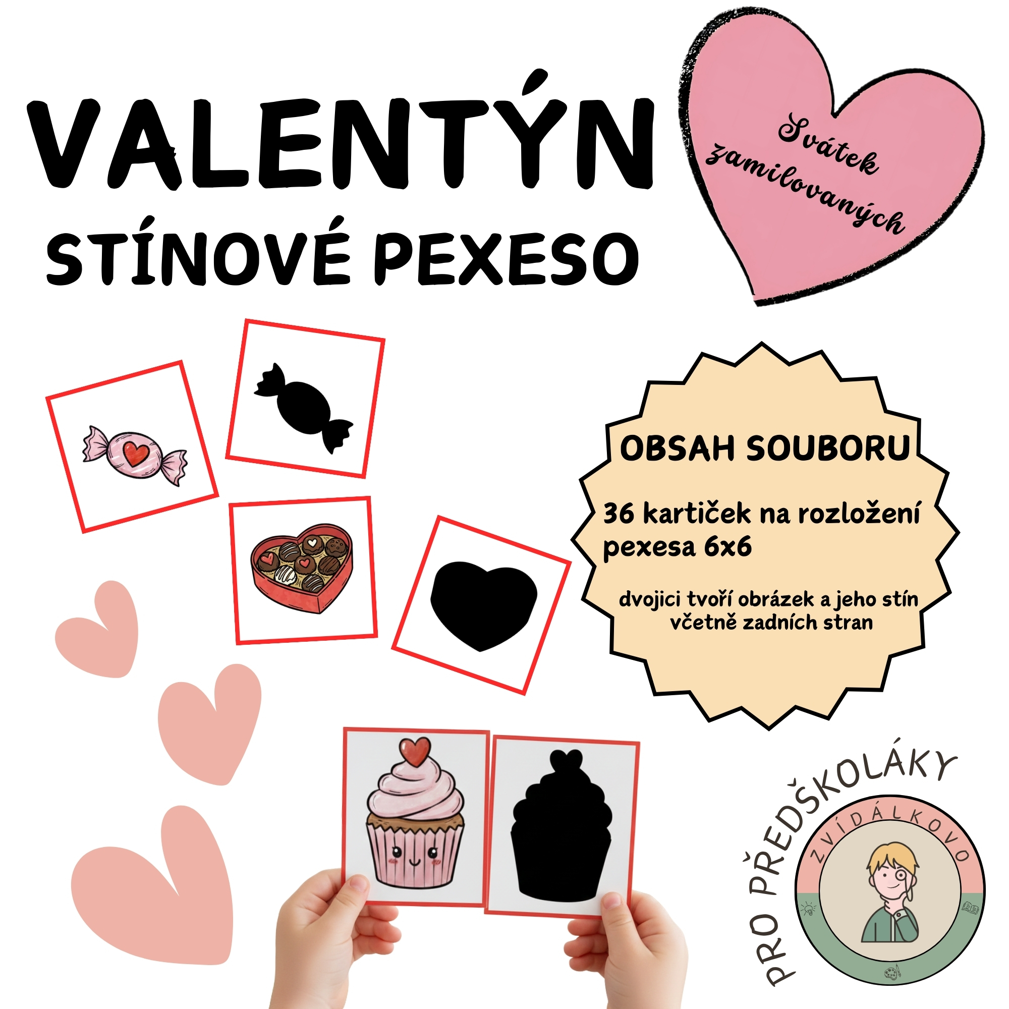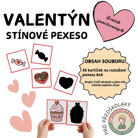 Zvídálkovo Valentýn - Stínové pexeso je hra vhodná na zpestření valentýnského týdne v mateřské škole.