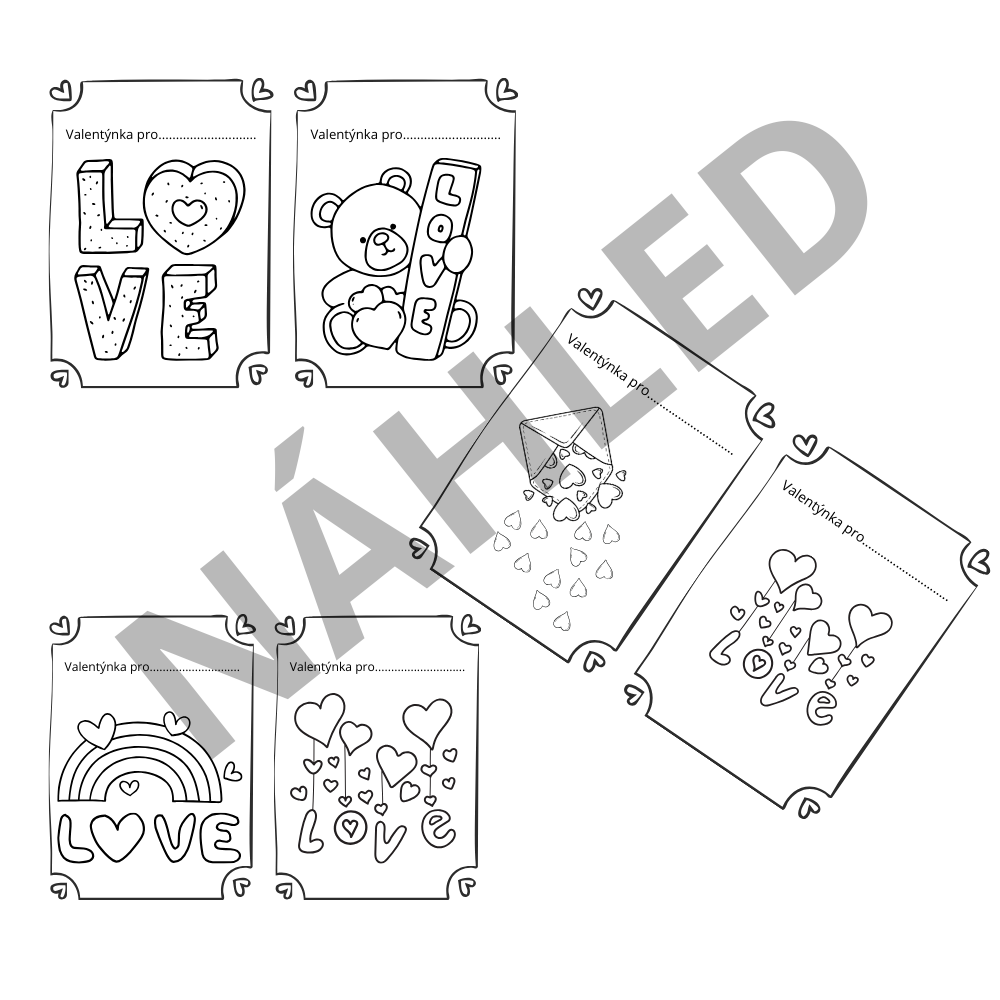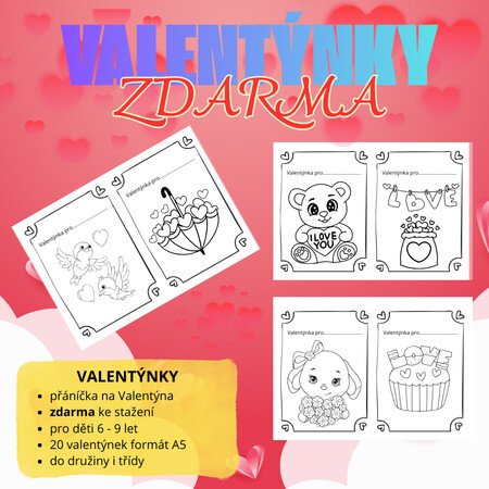 ✅ obsahuje 20 různých valentýnek formátu A5, které si děti mohou vybarvit a někomu darovat na Valentýna.