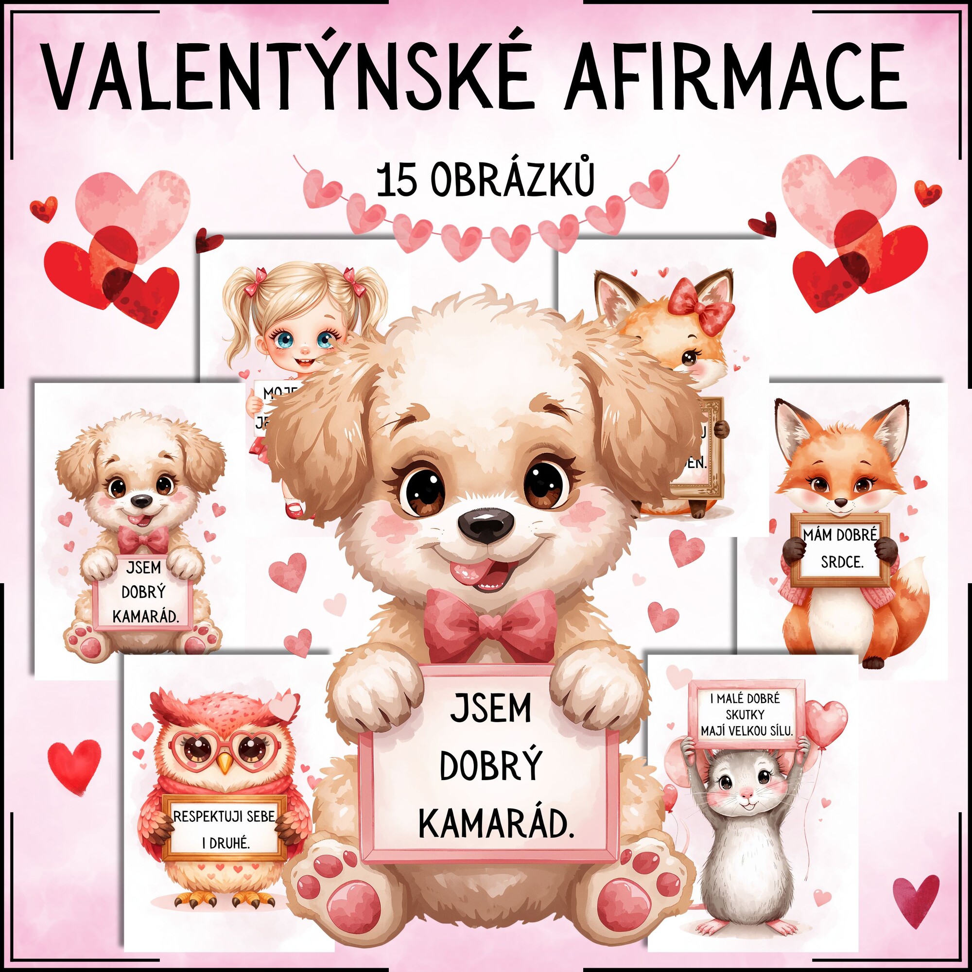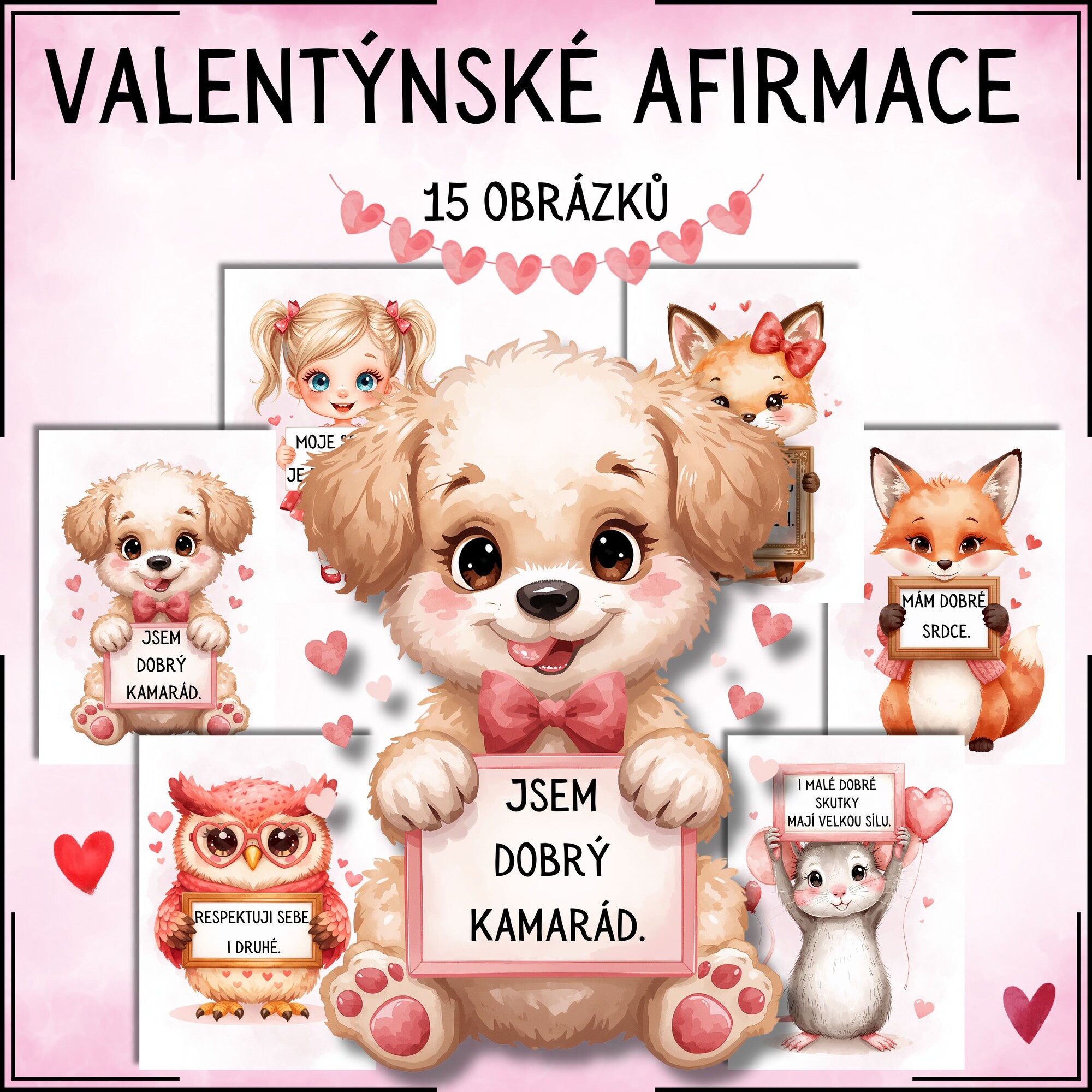 - 15 obrázků s afirmacemi ve velikosti A4