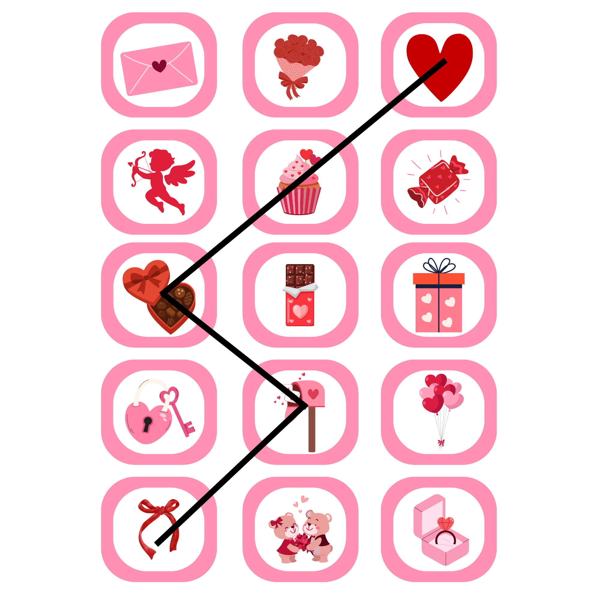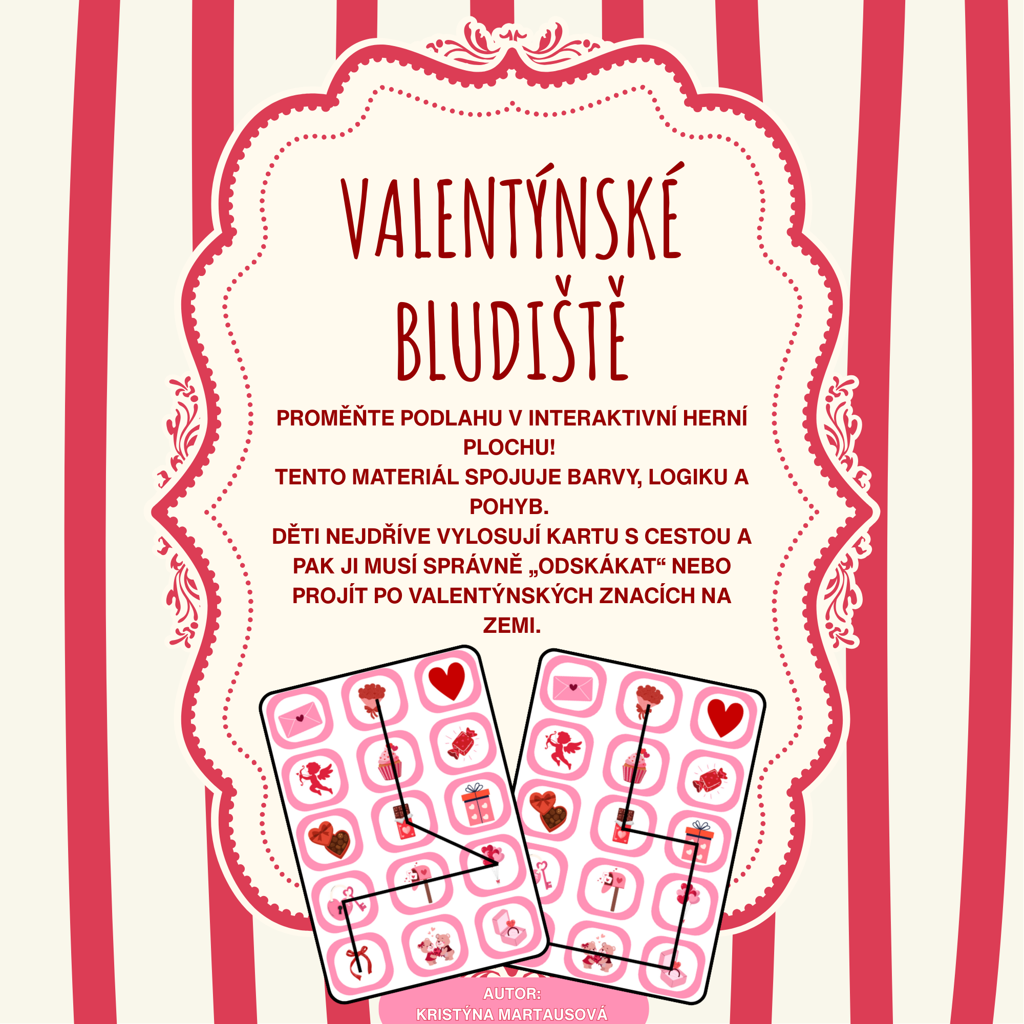 - Příprava: Rozmístěte valentýnské karty s obrázky po podlaze (vytvoříte herní pole).