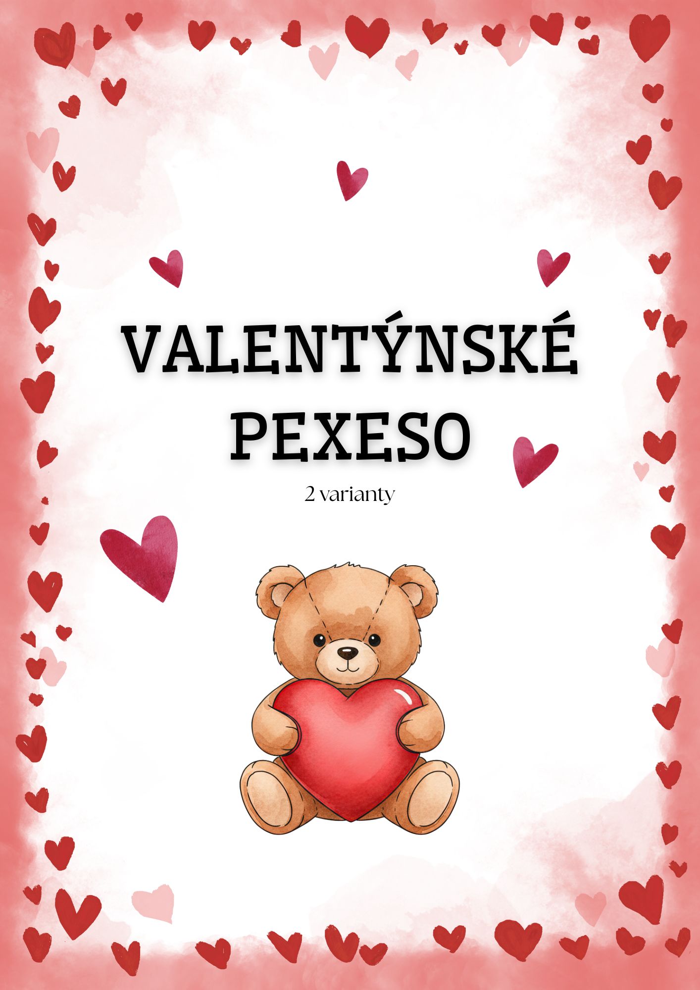 Pexeso je vytvořeno pro děti ve věku 3-6 let na téma Valentýn nebo “Srdíčkový den”.