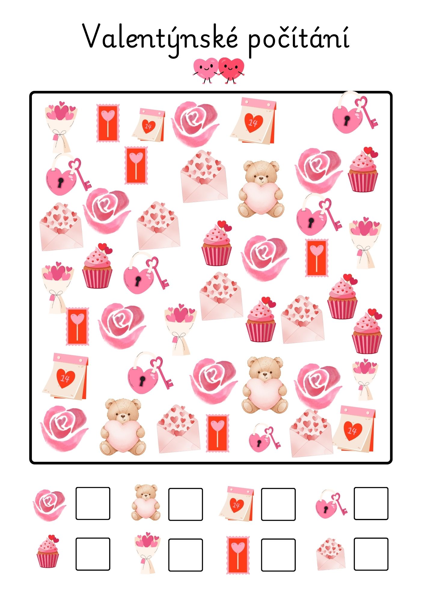 🎯 Cíl: Děti se při zábavných aktivitách učí soustředění, logice, matematice a čtení, a zároveň si připomínají tradici svátku svatého Valentýna 💌.