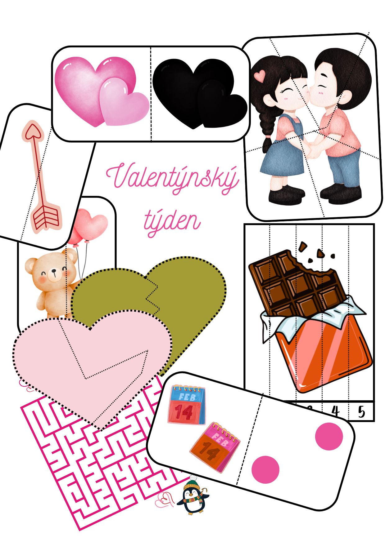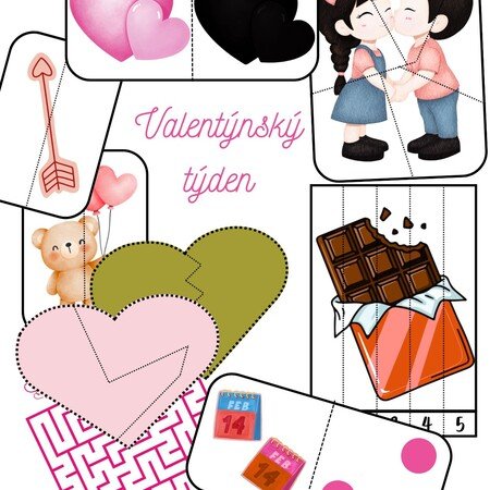Valentýnský vzdělávací balíček pro MŠ plný hravých aktivit, které rozvíjejí zrakové vnímání, logické myšlení, jemnou motoriku i počítání.