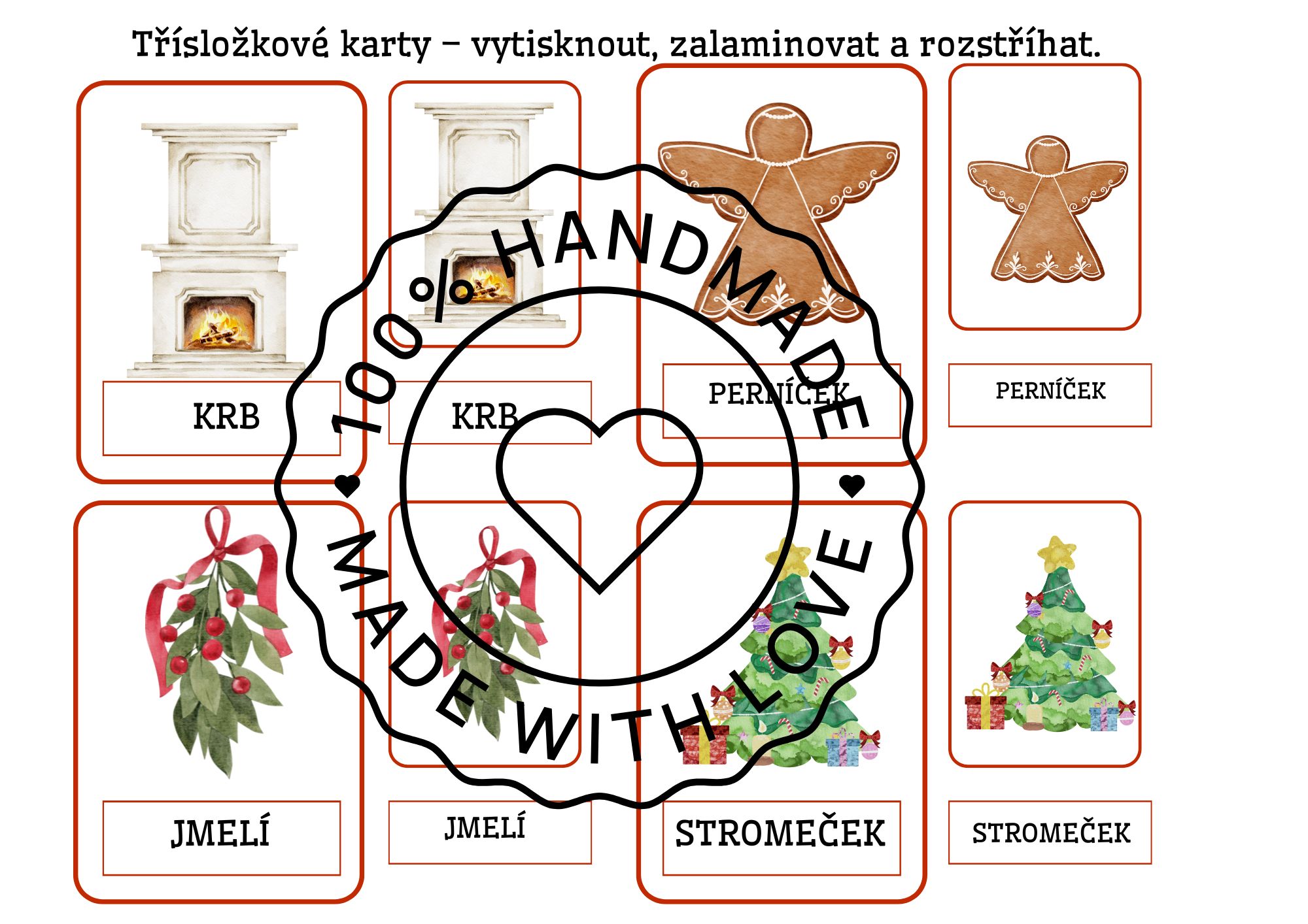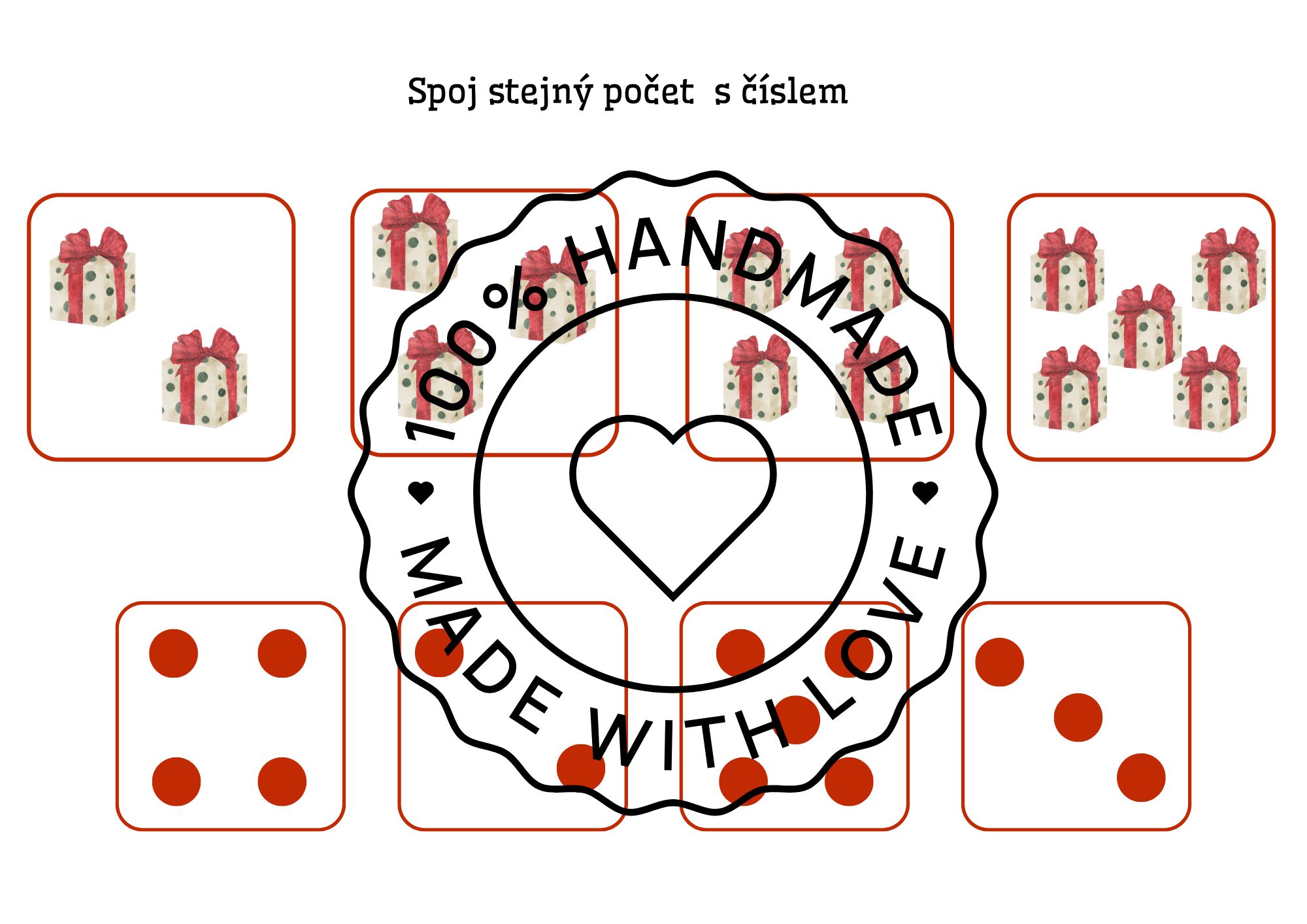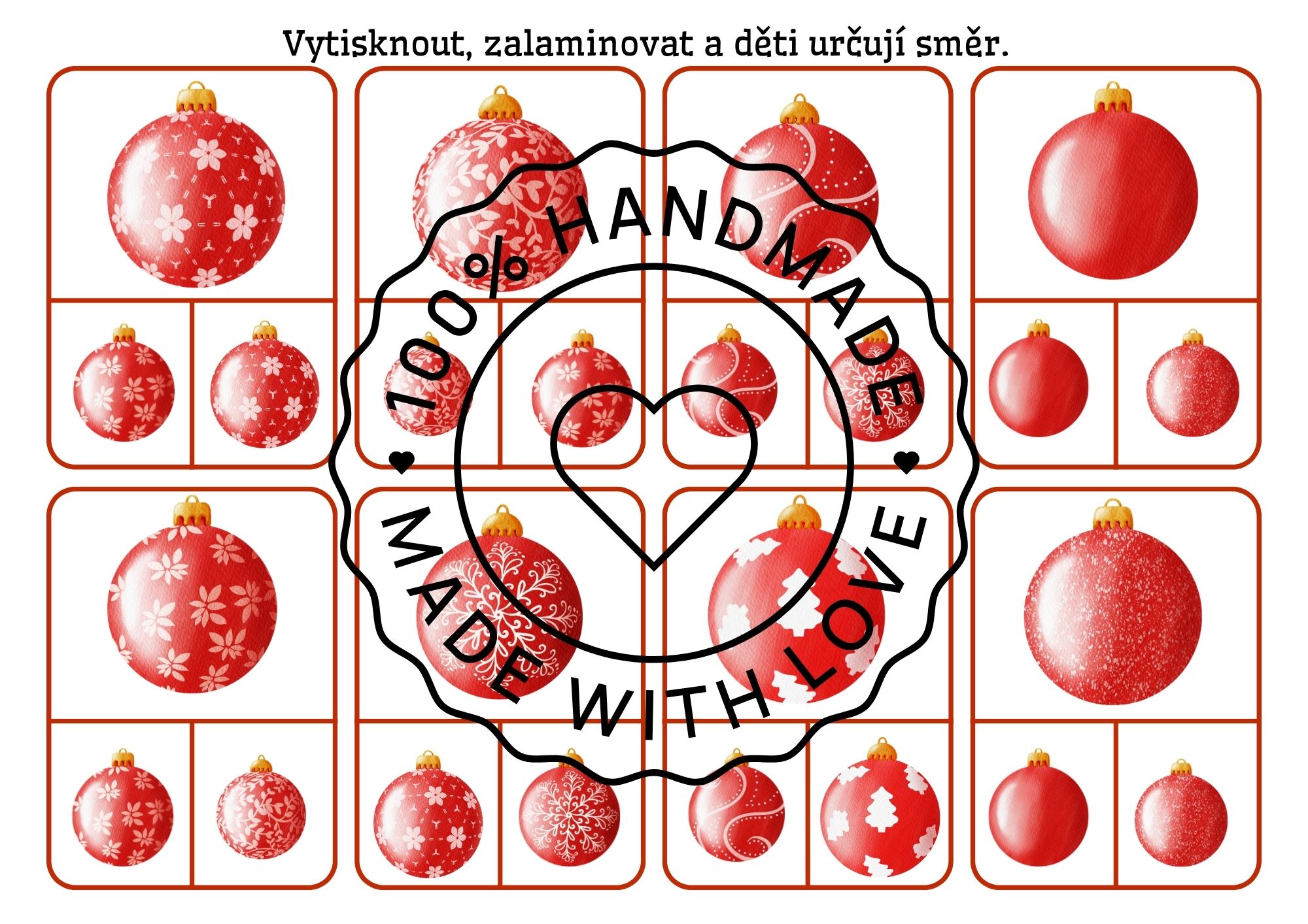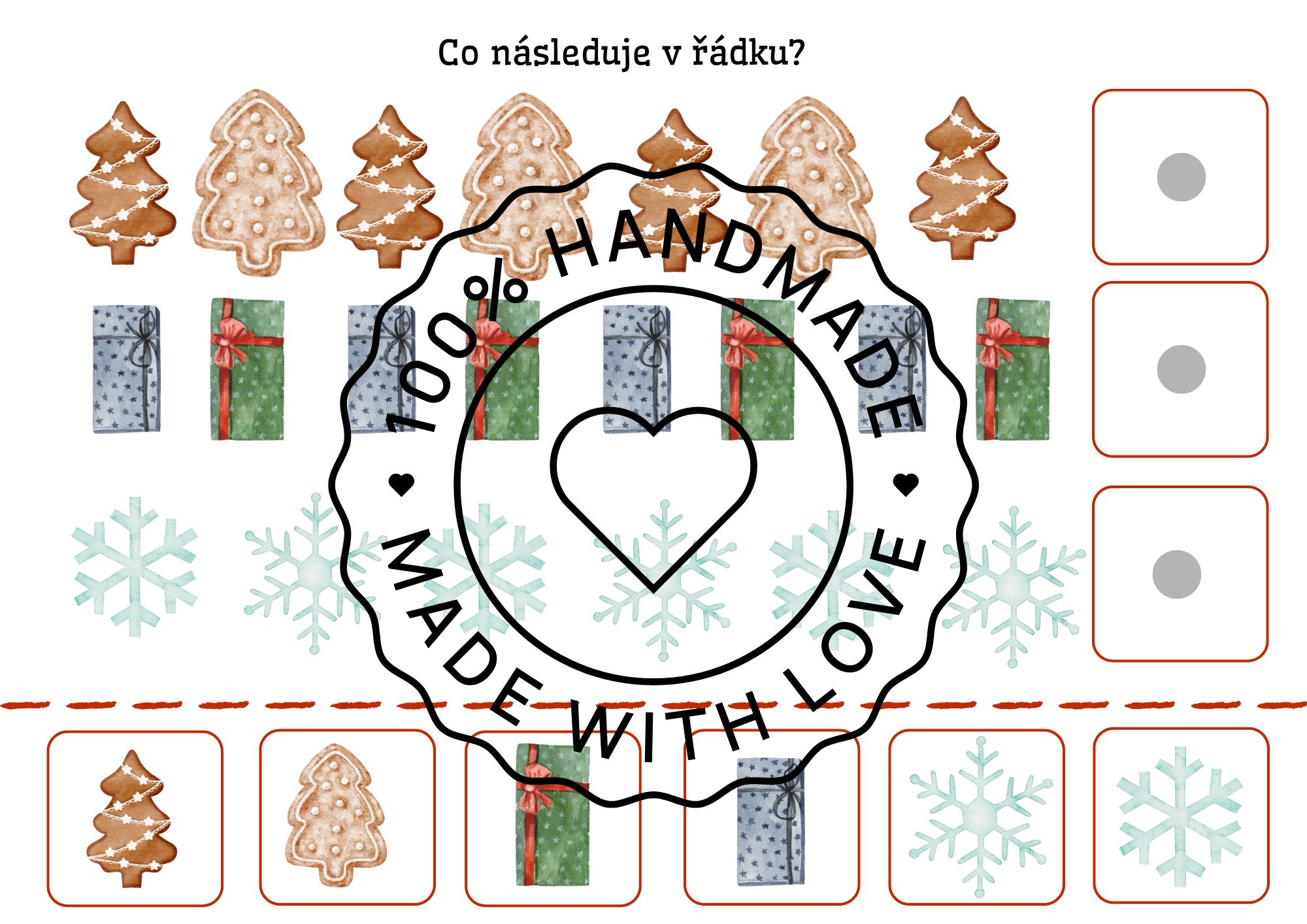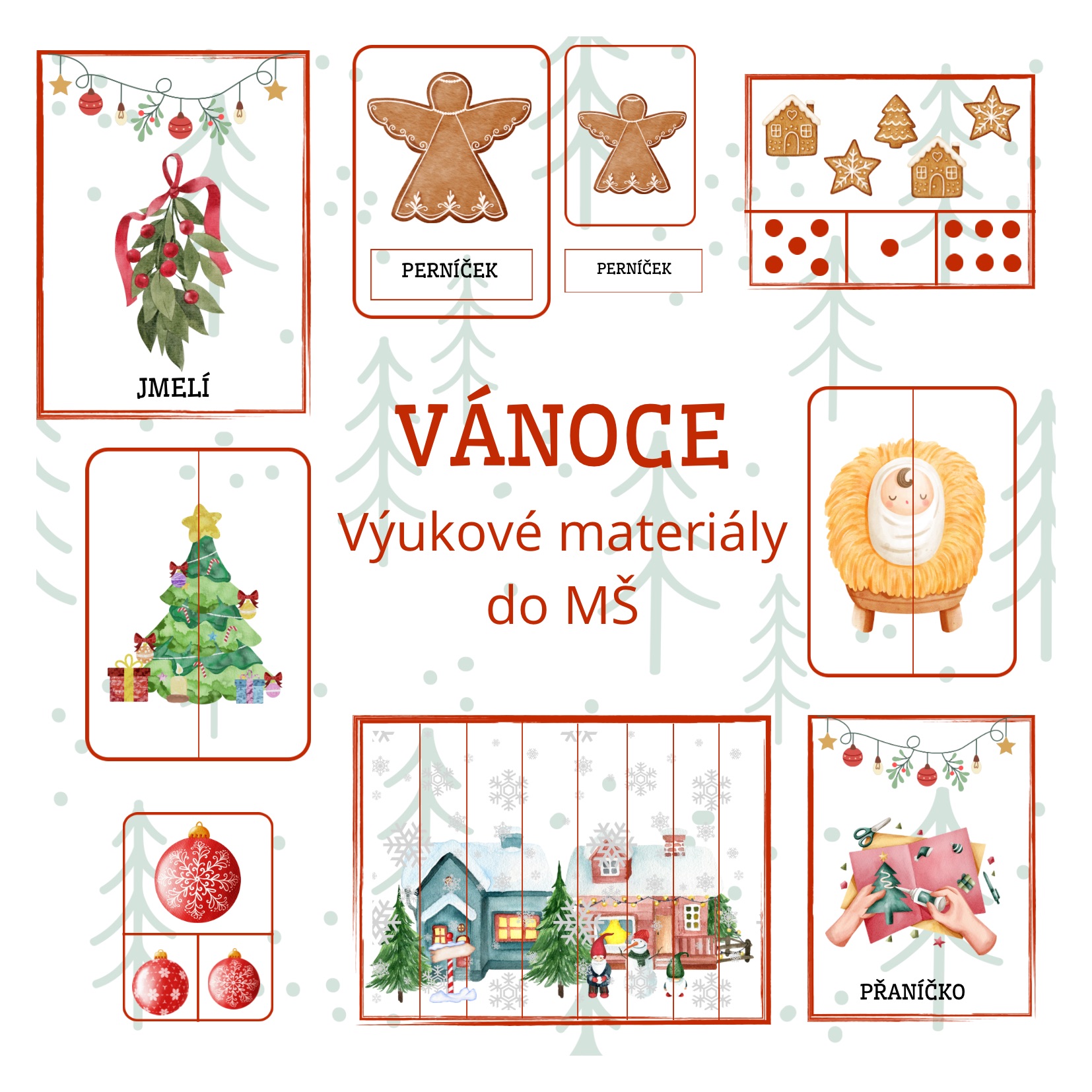 Tento materiál nabízí pestrou sadu vánočních úkolů a her, které rozvíjejí zrakové vnímání, orientaci, jemnou motoriku i slovní zásobu dětí. Najdete zde demonstrační obrázky, skládanky, počítání vánočních předmětů, určování pravé a levé strany, třísložkové karty, kolíčkové aktivity i pracovní listy.Ideální je materiál vytisknout a zalaminovat pro dlouhodobé použití.