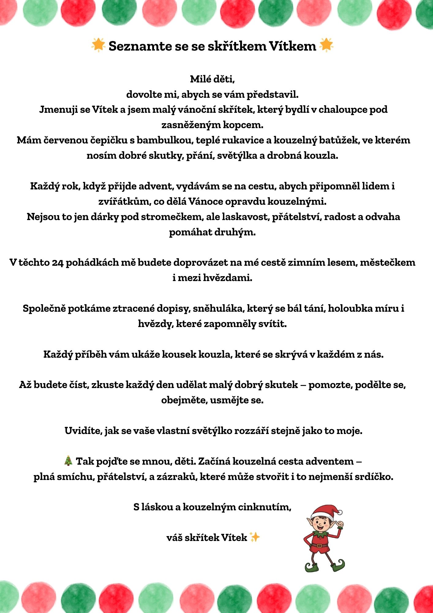 🧝♂️ „Kouzlo Vánoc není v dárcích, ale v tom, že dáváme radost.“ – skřítek Vítek