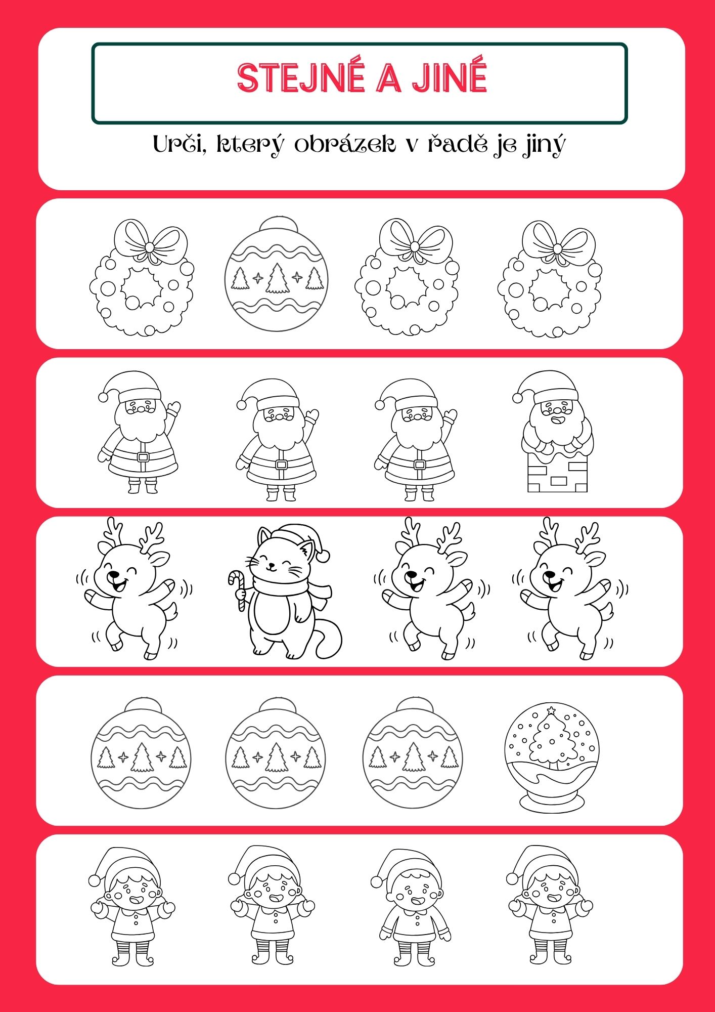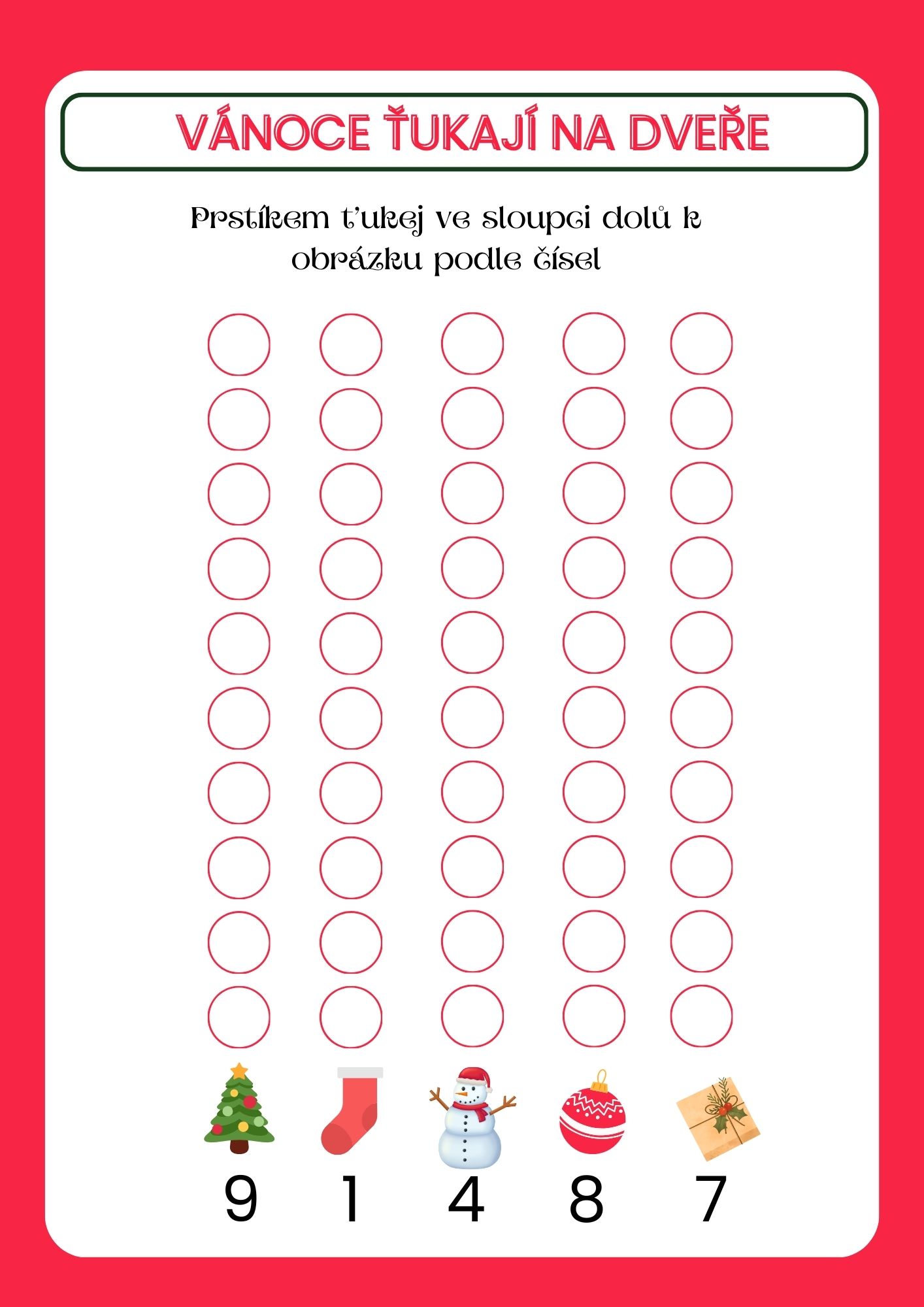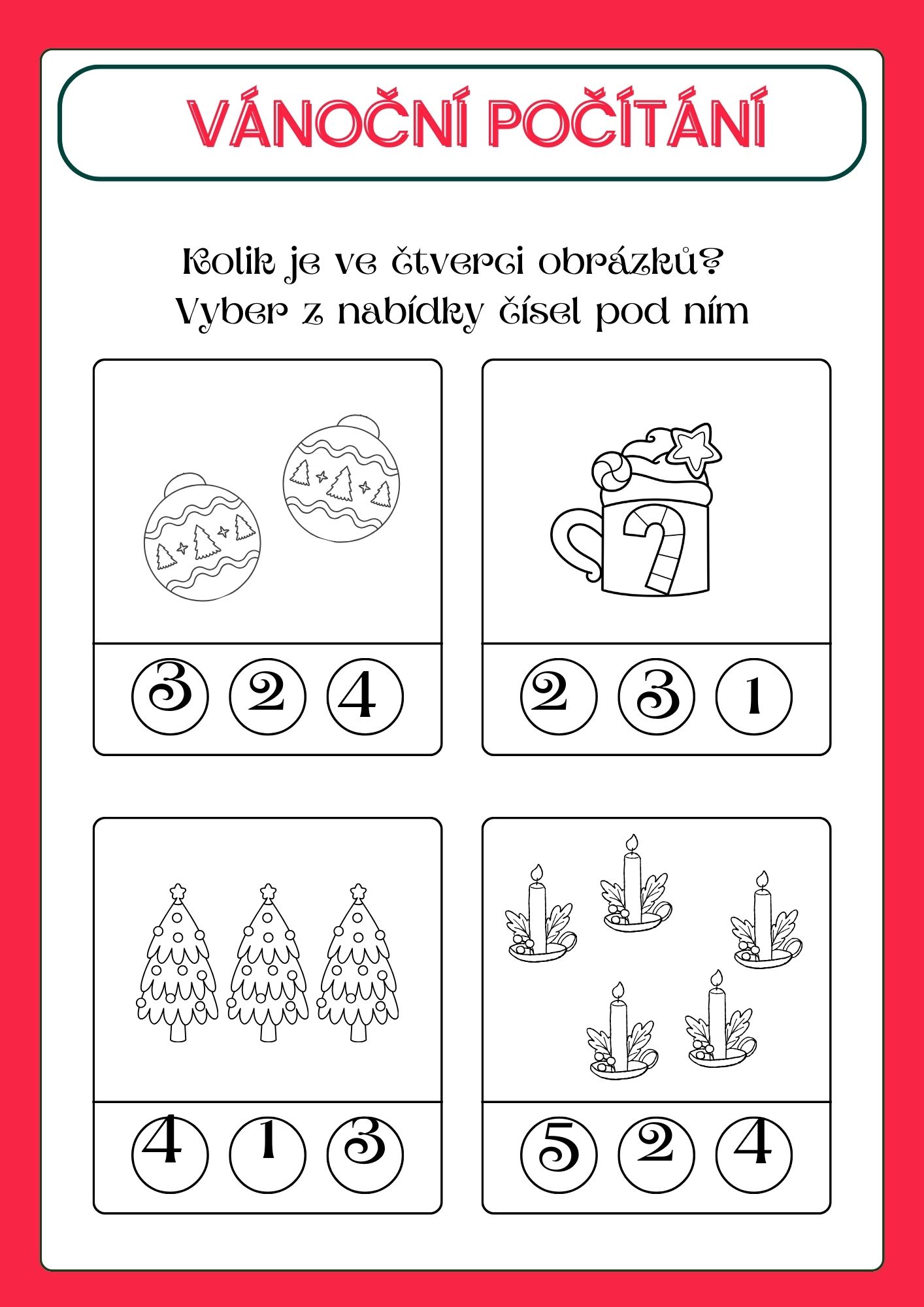 Soubor 8 vánočně laděných aktivit pro děti předškolního věku nebo prvňáčky. Jednoduché aktivity, které můžete zalaminovat a pověsit na plot, udělat z nich stezku.