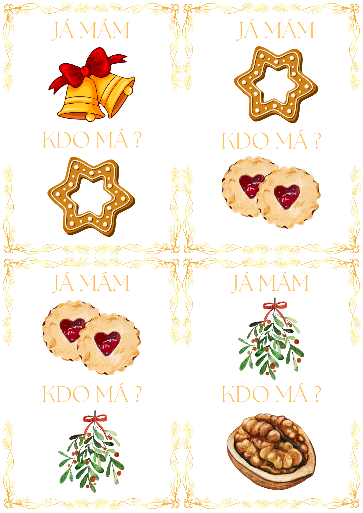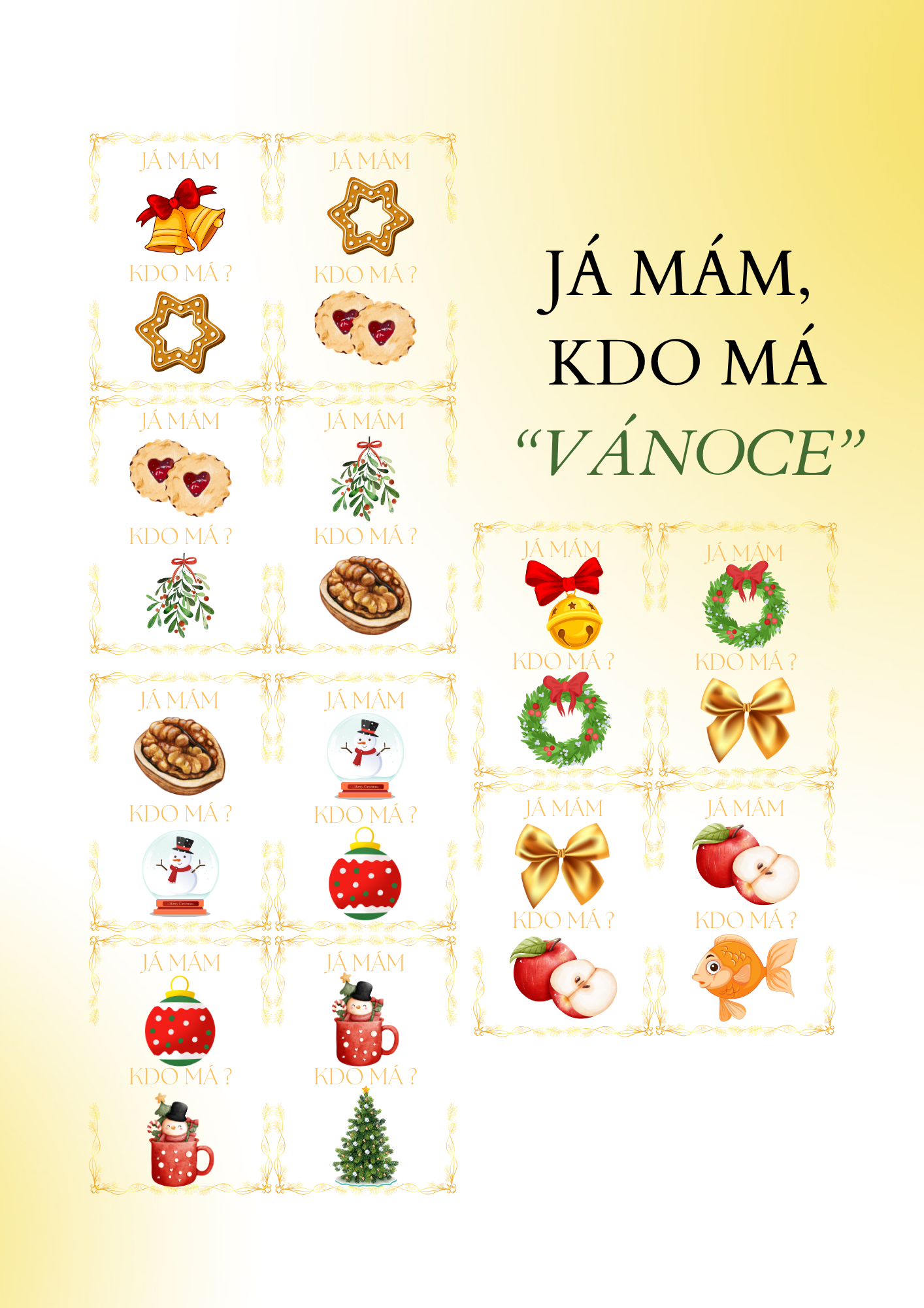 Tento soubor obsahuje 7 stran didaktických karet s celkem 24 originálními, barevnými obrázky s vánoční tematikou. Stačí je vytisknout, zalaminovat a děti mohou hned hrát a učit se zábavnou formou.