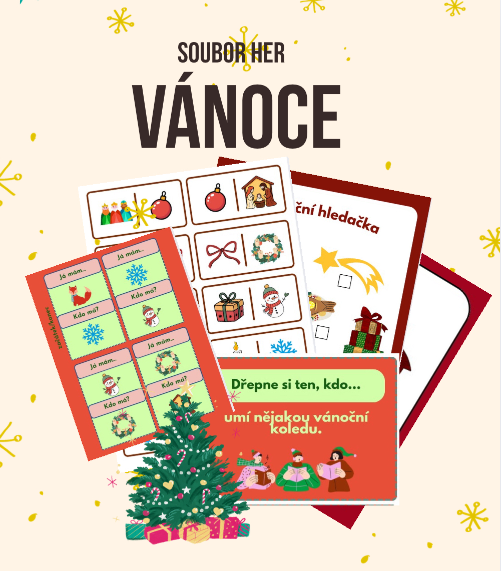Soubor obsahuje 4 aktivity s kartami 🎄2 verze dominaVánoční Já mám, kdo má? (32 karet)Dřepne si ten, kdo…Vánoční hledačka+ tipy na využití 🎁