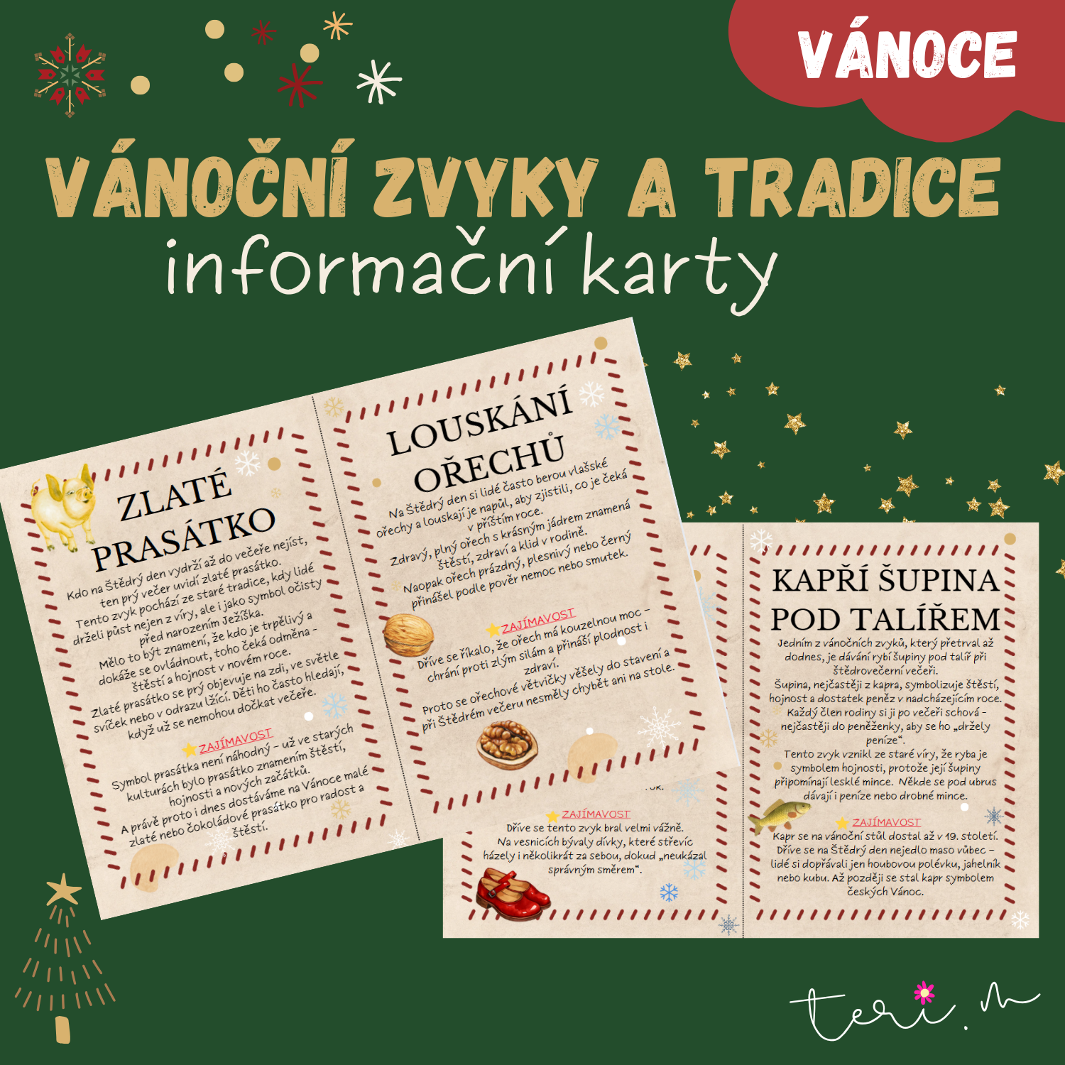 Přineste do své třídy kouzelnou vánoční atmosféru s touto sadou 27 informačních karet, které dětem přiblíží známé i méně známé české vánoční zvyky a tradice.