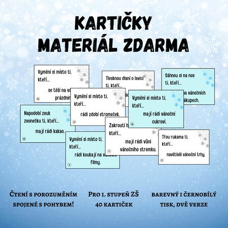 Čtení s porozuměním spojené s pohybem! Kartičky s úkoly pro žáky na začátek nebo konec hodiny.