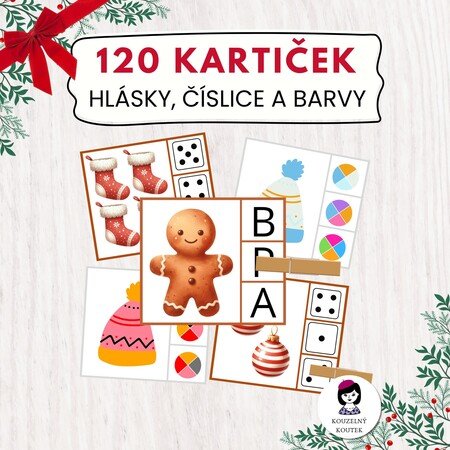 Sada 3 aktivit s kolíčky - celkem 120 kartiček (24 PDF stran), včetně řešení pro sebekontrolu