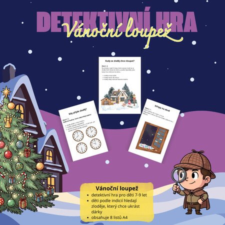 ✅ Detektivní hra dětem zpříjemní vánoční čas. Zahrají si na detektivy, aby zachránili Vánoce v jedné rodině. Děti si tak rozvíjejí paměť, logiku a soustředění.