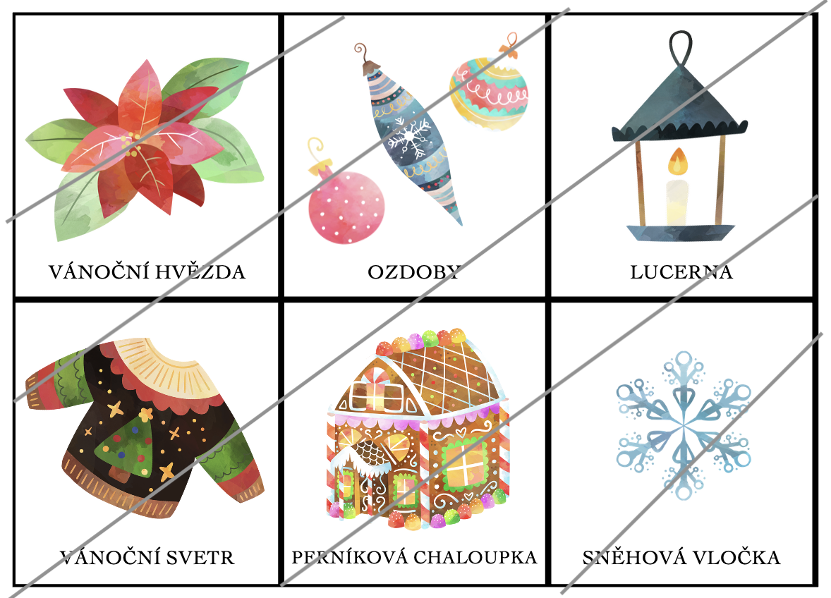 Tento soubor obsahuje 24 vánočních karet, jeden plakát s vánočními aktivitami a 4 skládací obrázky. Vše je k tisku na papír A4.