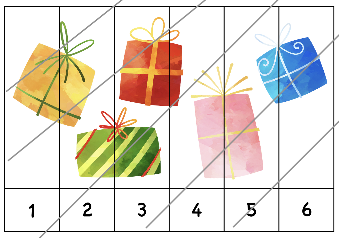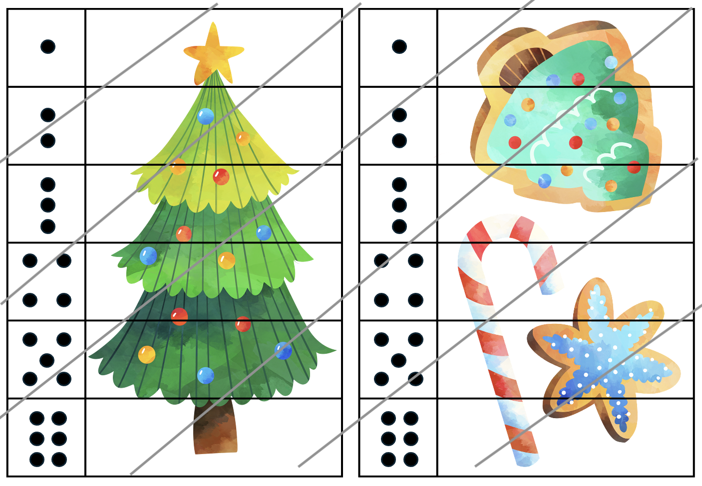 Skládací obrázky jsou ve 2 velikostech (2 obrázky na stránku nebo jeden obrázek na stránku). Pro děti které již ovládají čísla lze vytisknout obrázky s čísly, pro ostatní děti předškolního věku jsou k dispozici obrázky na skládání s tečkami.