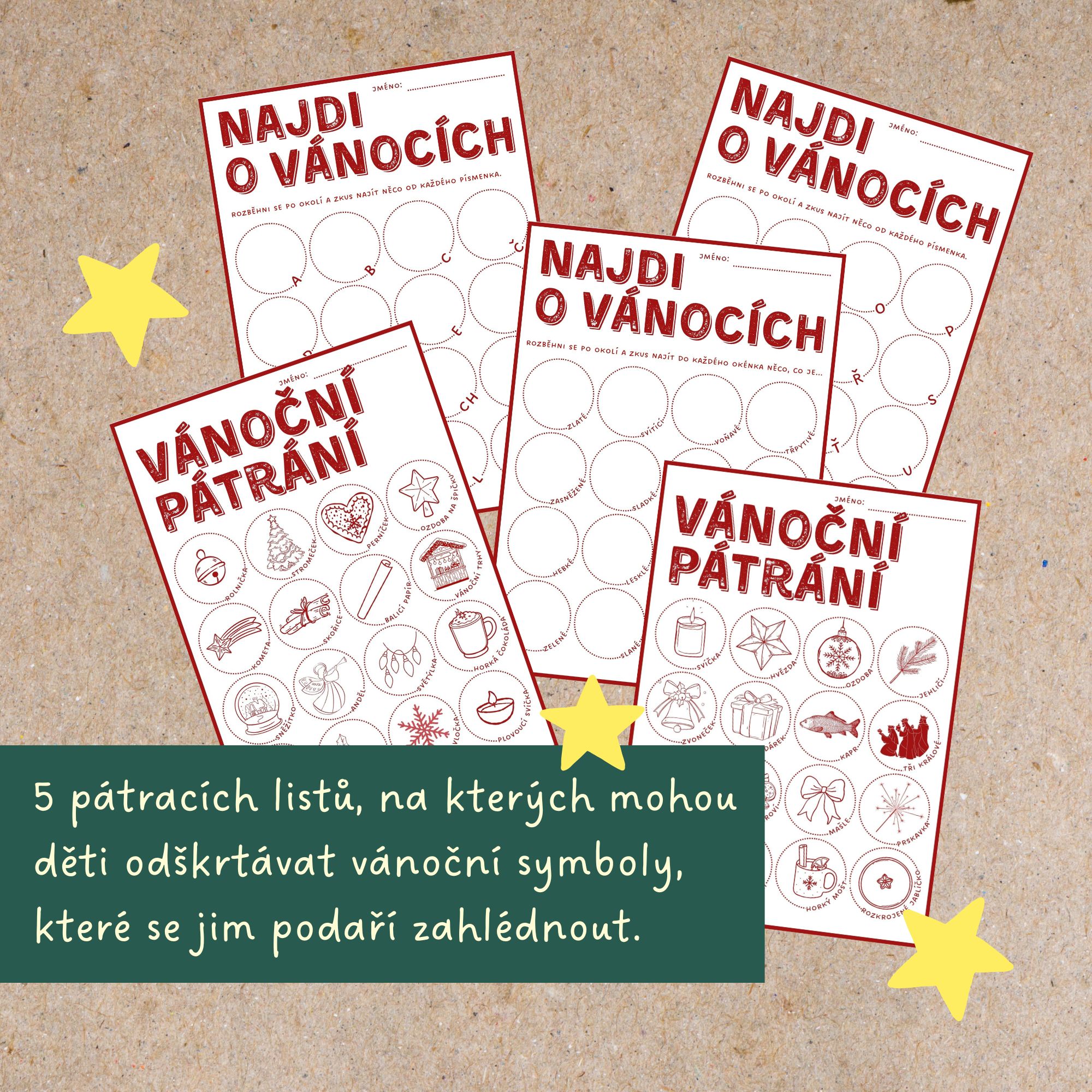 ⭐Hledáte-li další vánoční aktivity, podívejte se třeba na náš VÁNOČNÍ DENÍK, který děti provede celým adventním obdobím, kooperativní obraz HVĚZDA SPLNĚNÝCH PŘÁNÍ, VÁNOČNÍ TĚLOCVIK, VÁNOČNÍ NÁKUP, který poslouží jako rozcvička do hodin matematiky, VÁNOČNÍ POHROMY do hodin tvůrčího psaní, VÁNOČNÍ OSMISMĚRKY k ukrácení čekání na Ježíška nebo VÁNOČNÍ ZÁLOŽKY jako drobný dárek pro děti pod stromeček.