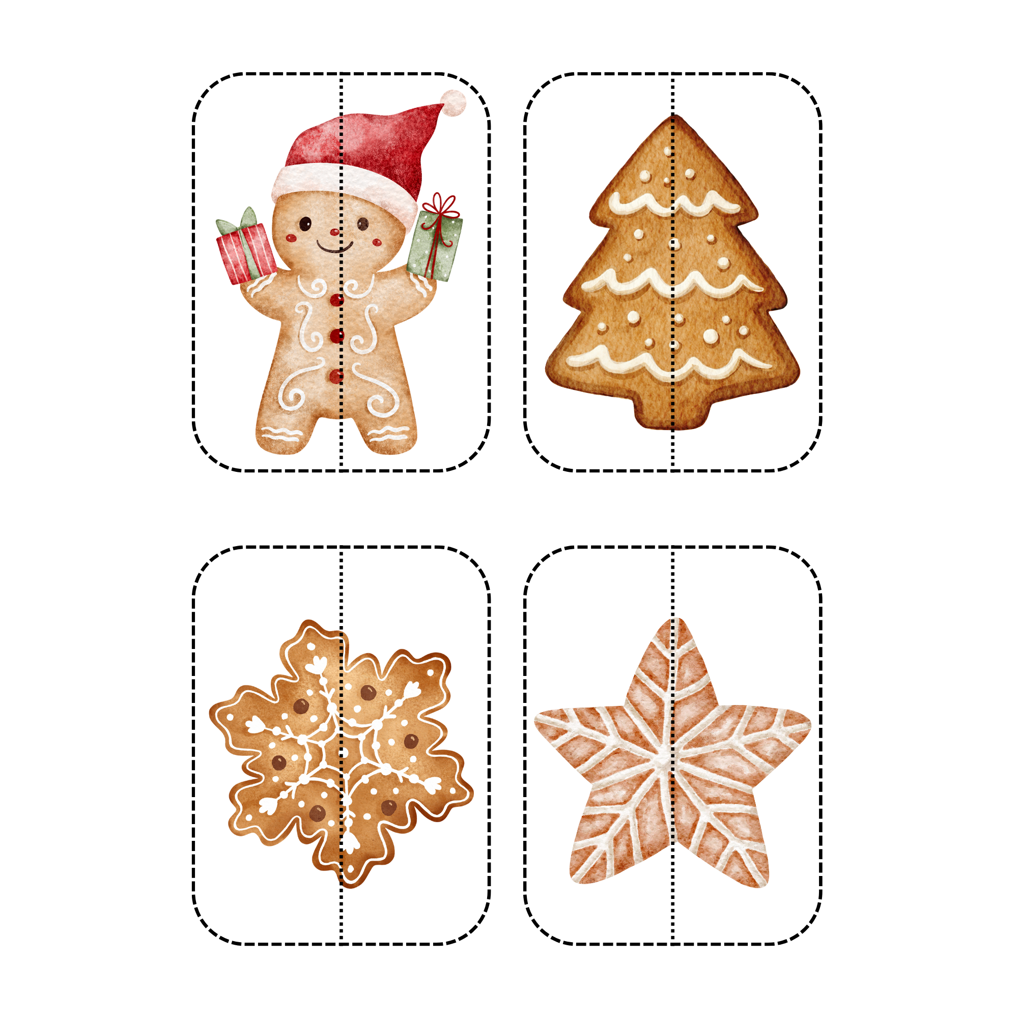 Tento materiál obsahuje 20 skládaček. Jedná se o hravé perníkové puzzle, ideální pro vánoční zábavu a rozvoj jemné motoriky. Každá skládačka představuje jedinečný perníkový motiv, který se složením promění v krásný obrázek. Perfektní pro tisk a skládání.