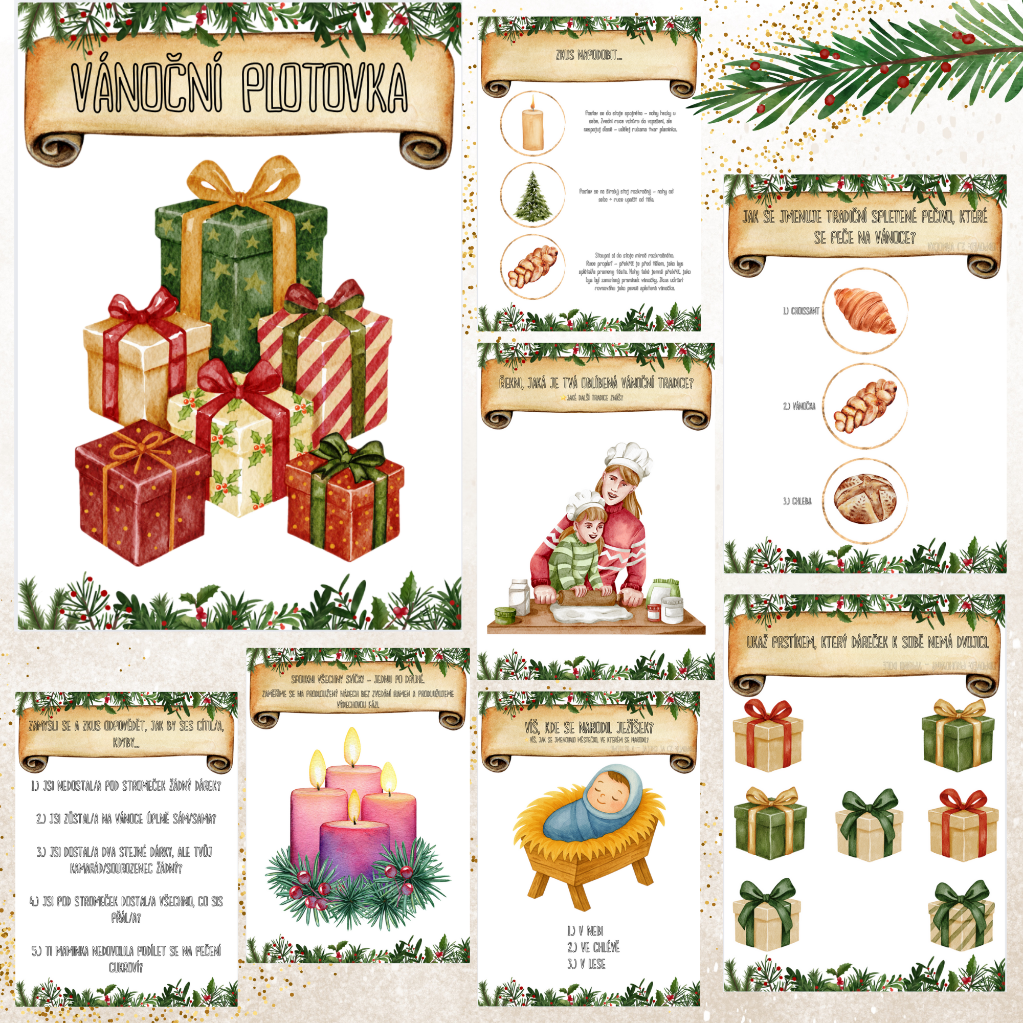 Vánoční plotovka bez pomůcek. Soubor obsahuje dohromady 13 stanovišť/úkolů.