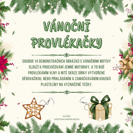 Tento soubor 14 demonstračních karet s vánočními motivy je určen k procvičování jemné motoriky.