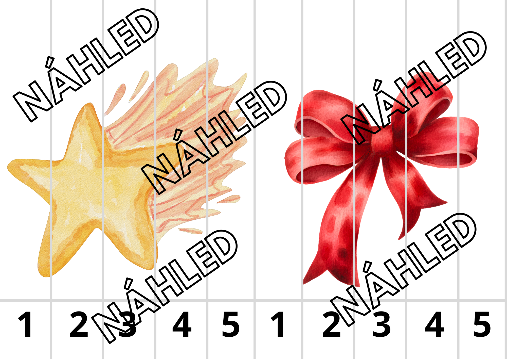 Soubor obsahuje 12 obrázků, které lze rozstříhat a následně využít jako puzzle. Součástí obrázků jsou i čísla 1-5, která dětem poslouží jako nástroj k rozvoji předmatematických dovedností.