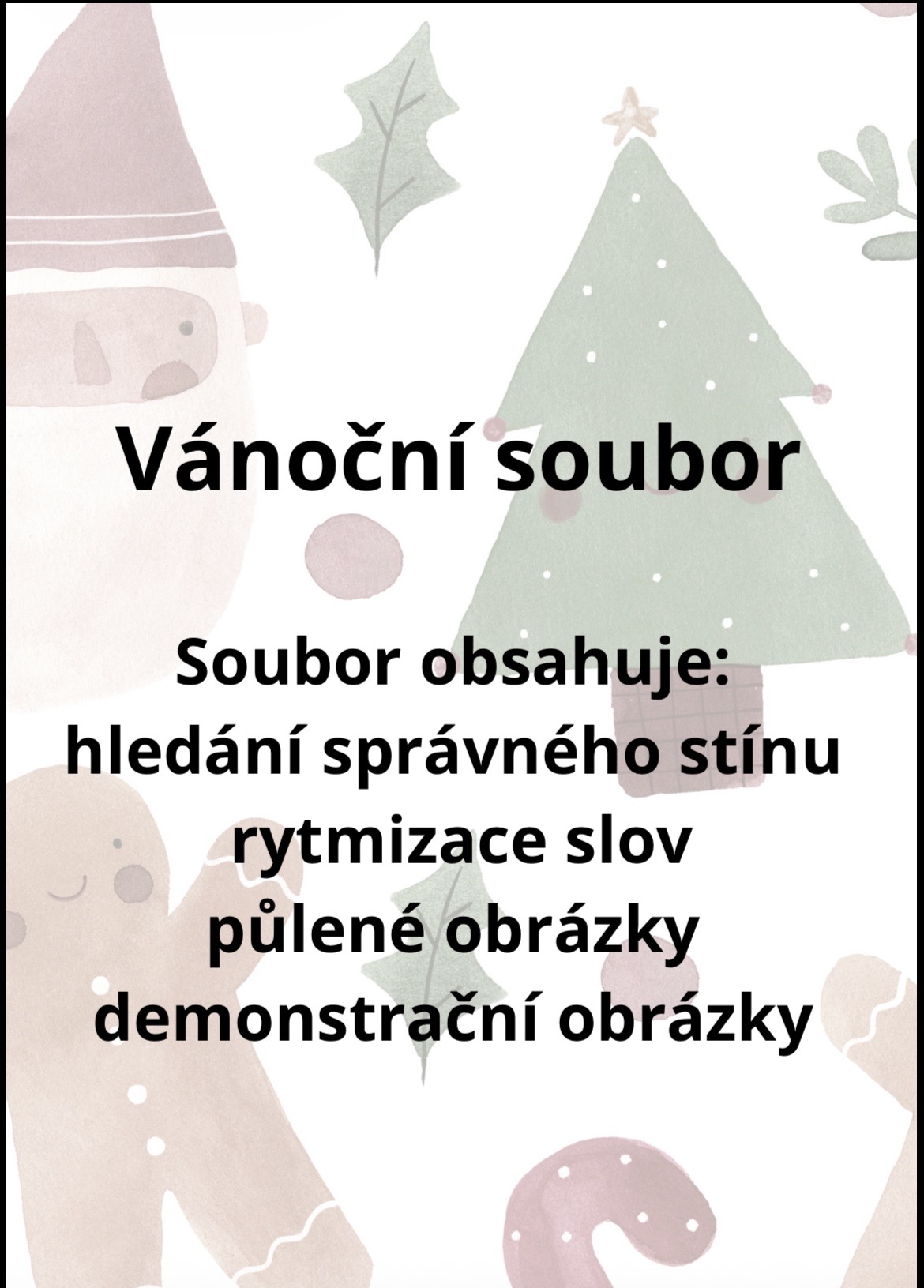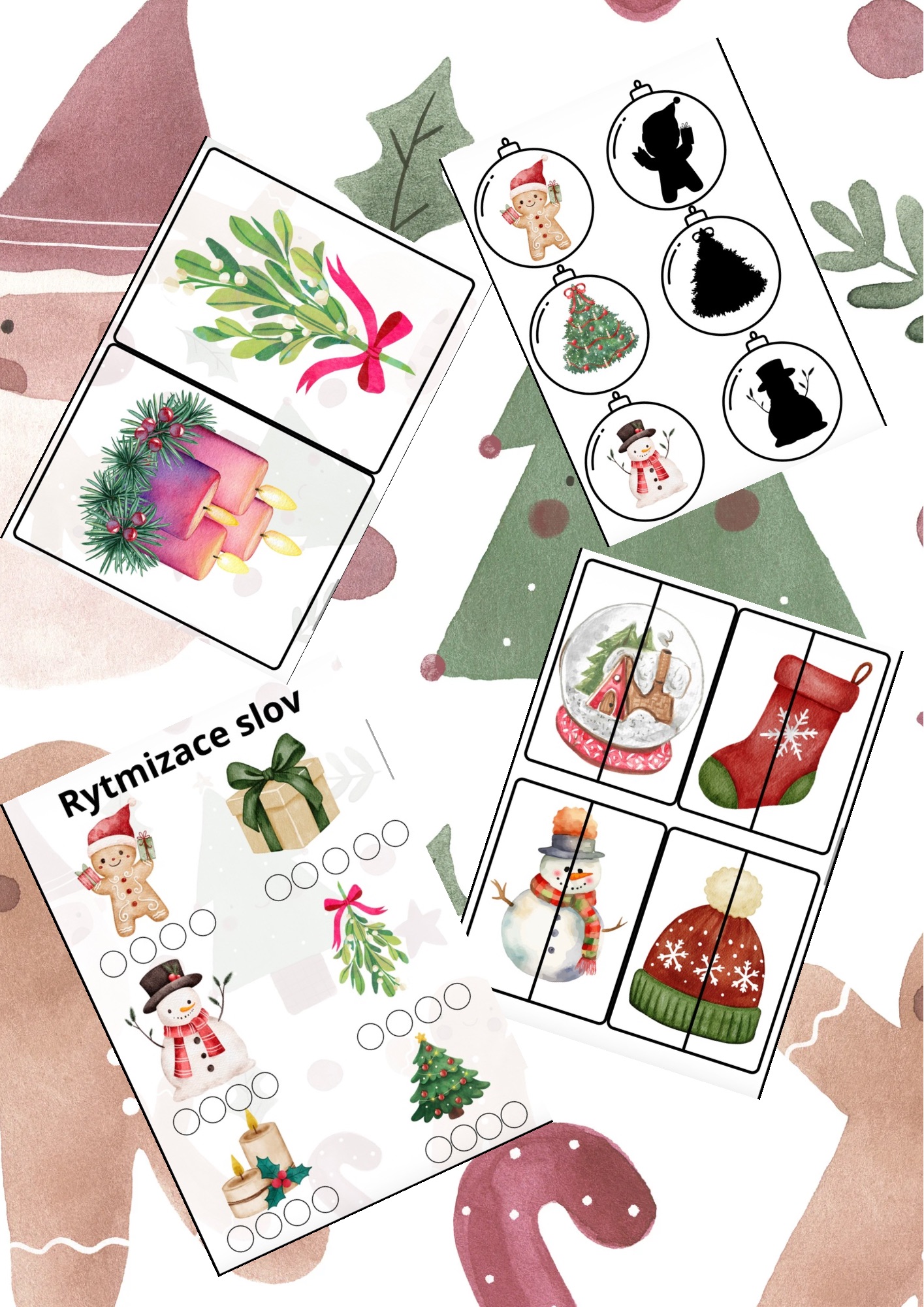 Soubor obsahuje hledání stejného stínu, rytmizaci slov, půlené obrázky, demonstrační obrázky 🎁🎄