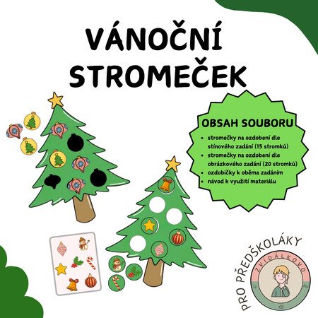 Děti si při hraní procvičují zrakové vnímání, sluchové vnímání, prostorovou orientaci, předmatematické představy a při rozmisťování vánočních ozdobiček také jemnou motoriku.