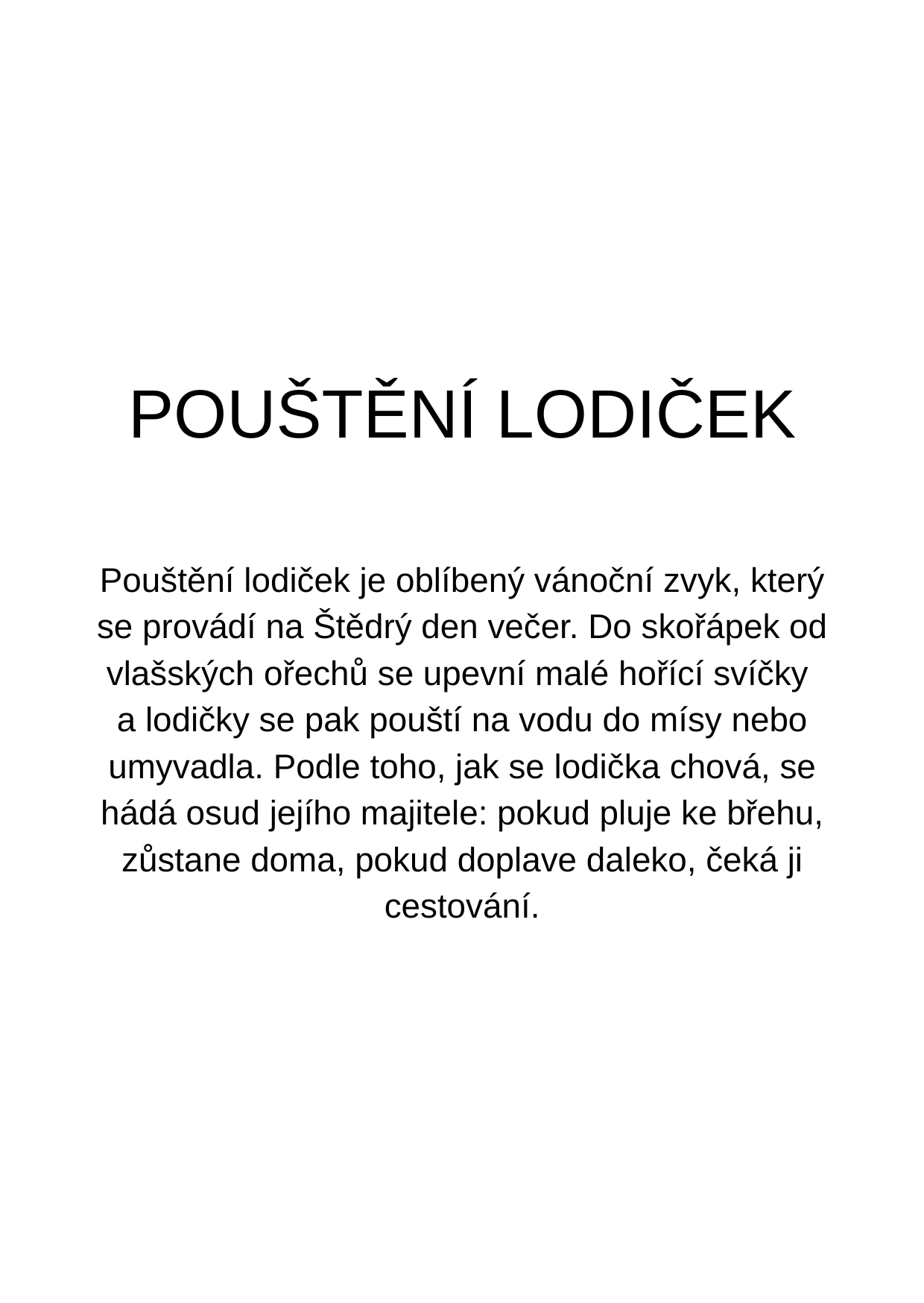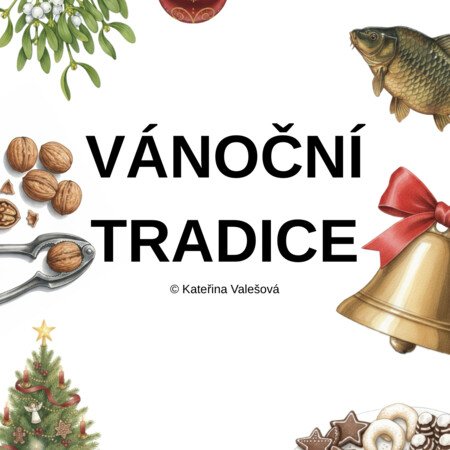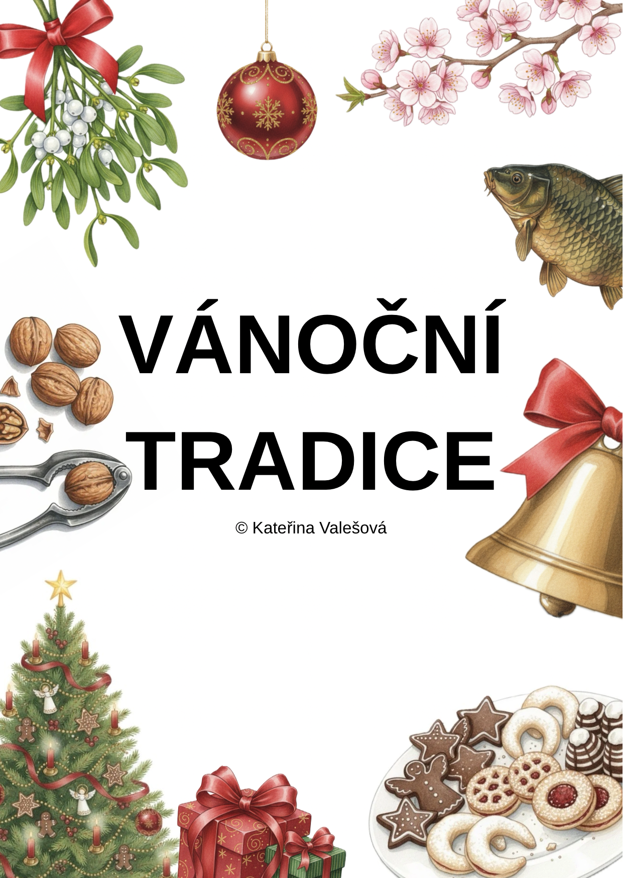 Soubor obsahuje 23 vánočních tradic a zvyků - vždy dvojici obrázek a popis. Kartičky jsou navržené ve formátu A6, lze tedy vytisknout 4 na stránku :-)