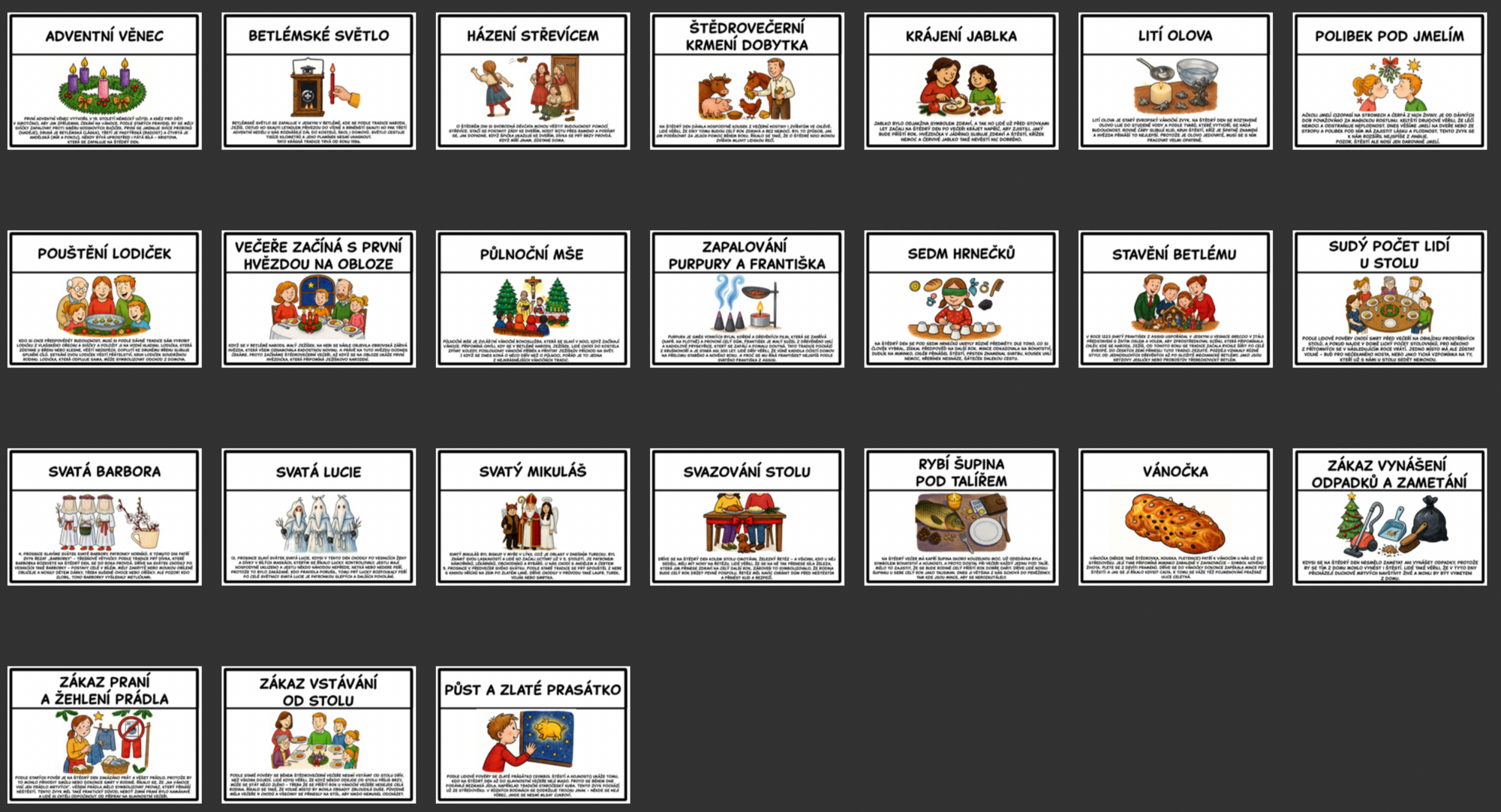 🟢 Pantomima - Děti si vylosují kartičku a předvádějí tradici bez mluvení. Ostatní hádají.