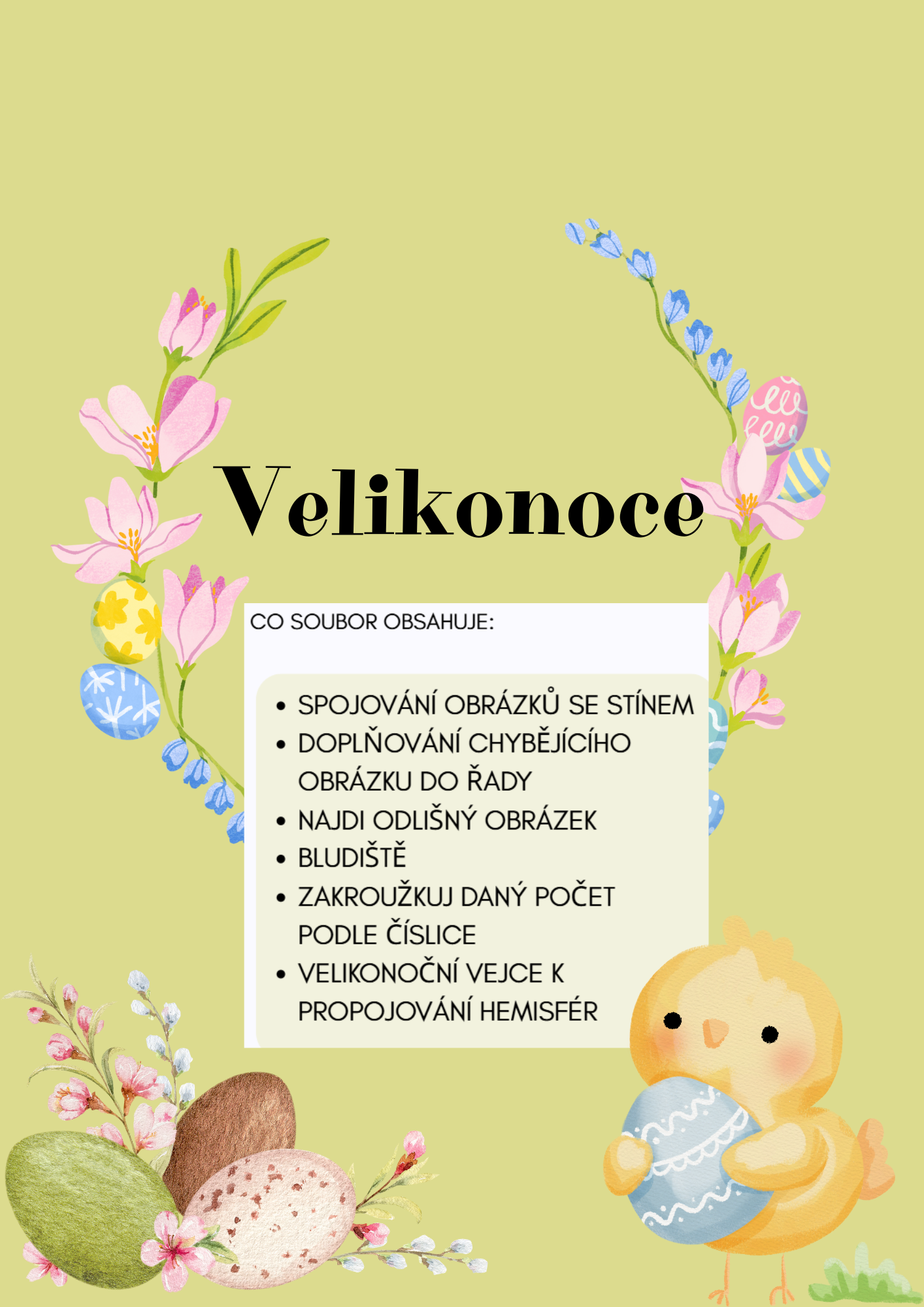 Hledáš smysluplné a zároveň zábavné velikonoční aktivity pro předškoláky? Tento soubor nabízí pestrou škálu úkolů, které děti baví a přirozeně rozvíjejí jejich myšlení i motoriku.