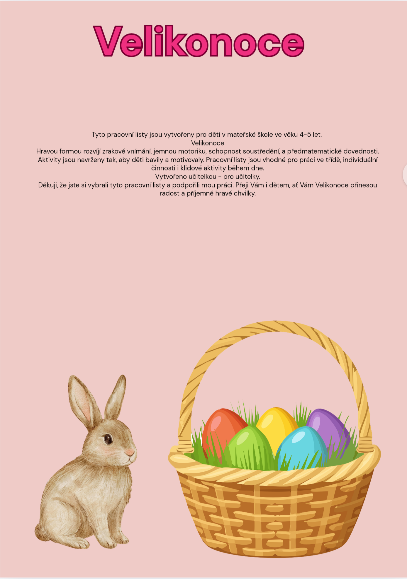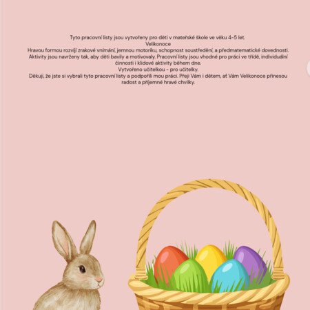Děkuji, že jste si vybrali tyto pracovní listy a podpořili mou práci. Přeji Vám i dětem, ať Vám pracovní listy Velikonoce přinesou radost a příjemné hravé chvilky.
