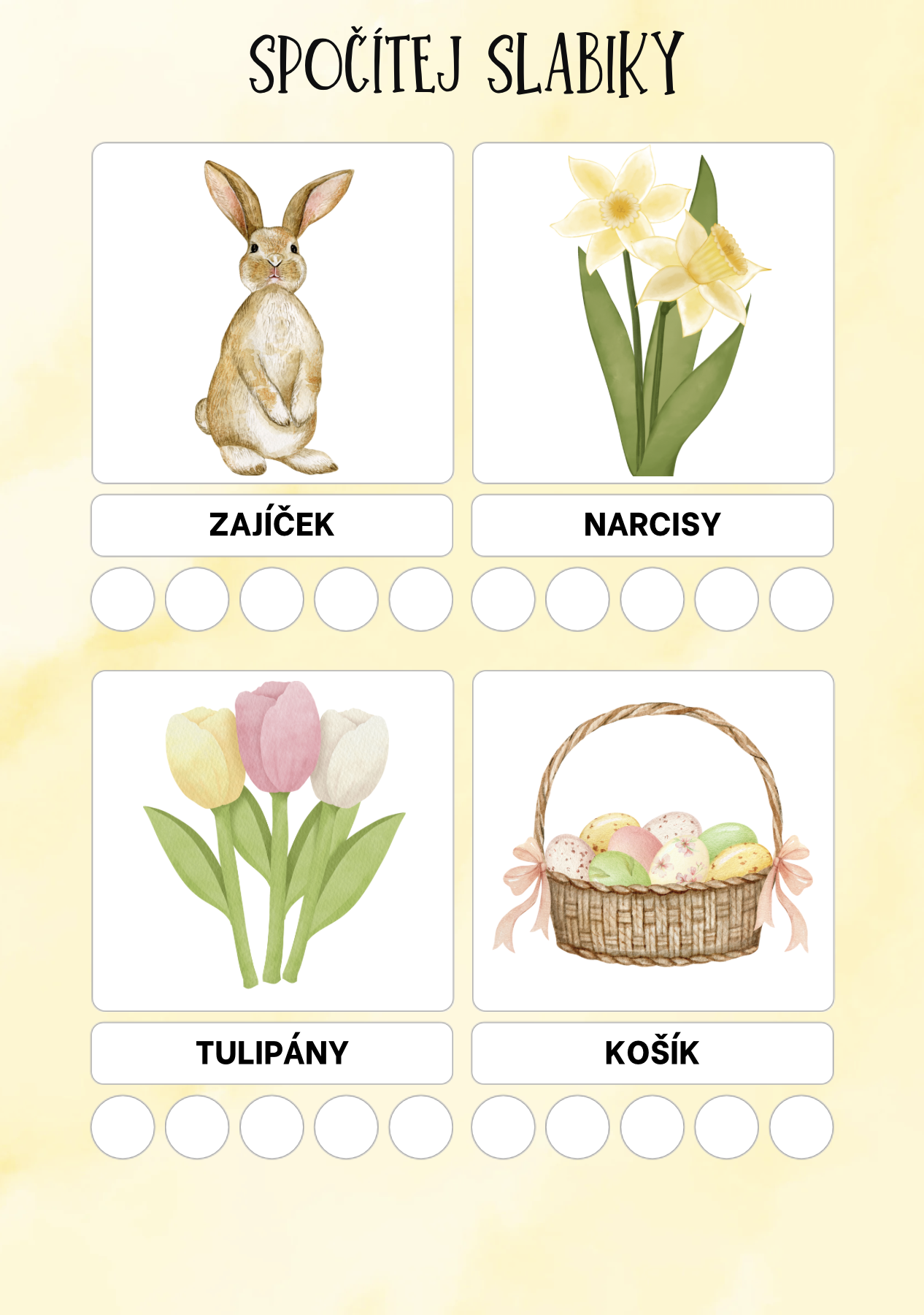 ✂️ počítání slabik, přiřazování počtu, seřazování podle velikosti