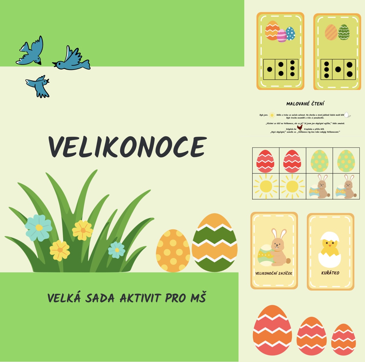 Materiál lze využít všemi možnými způsoby- jako aktivity, které jsou přímo v materiálu, nebo můžete využít i k poznávání barev, k lehkým počtům, atd. Lze vytisknout barevně i černobíle.