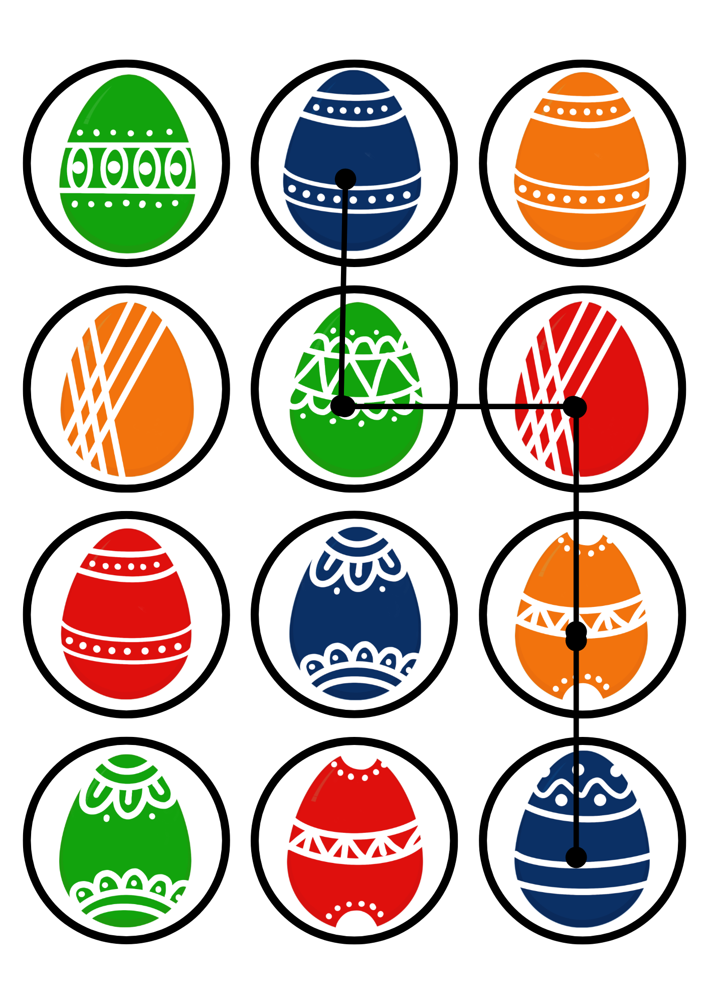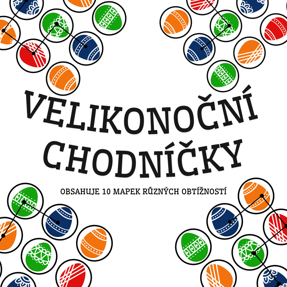 Děti se pohybují po kraslicích podle „mapy“ – sledují vyznačenou trasu.