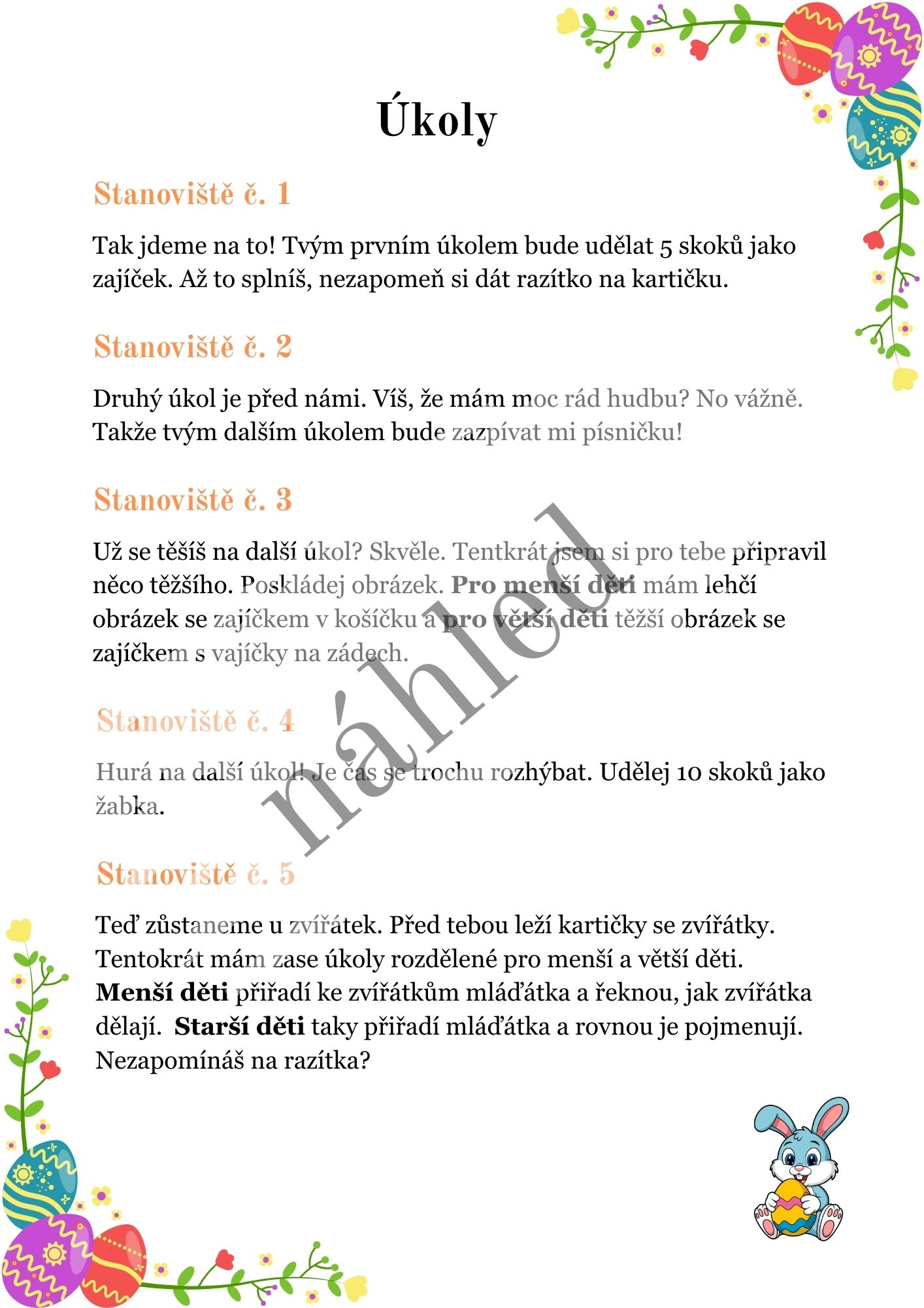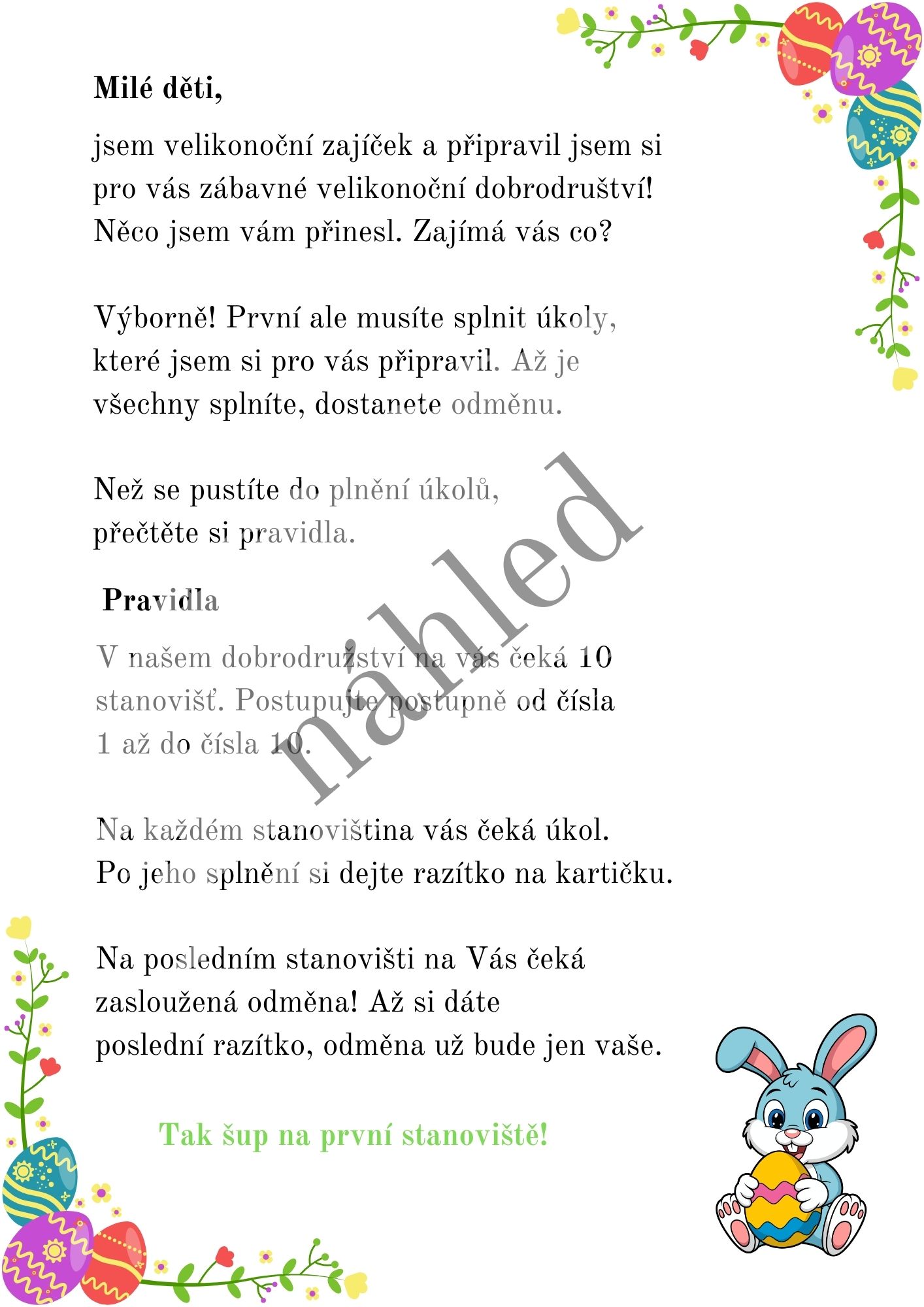 - Úvodní dopis od zajíčka, který motivuje děti k akci.