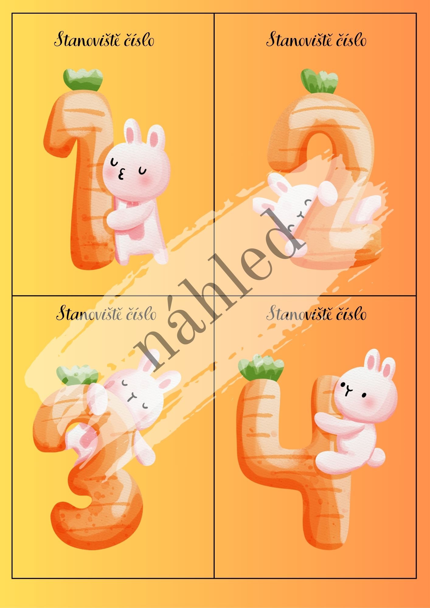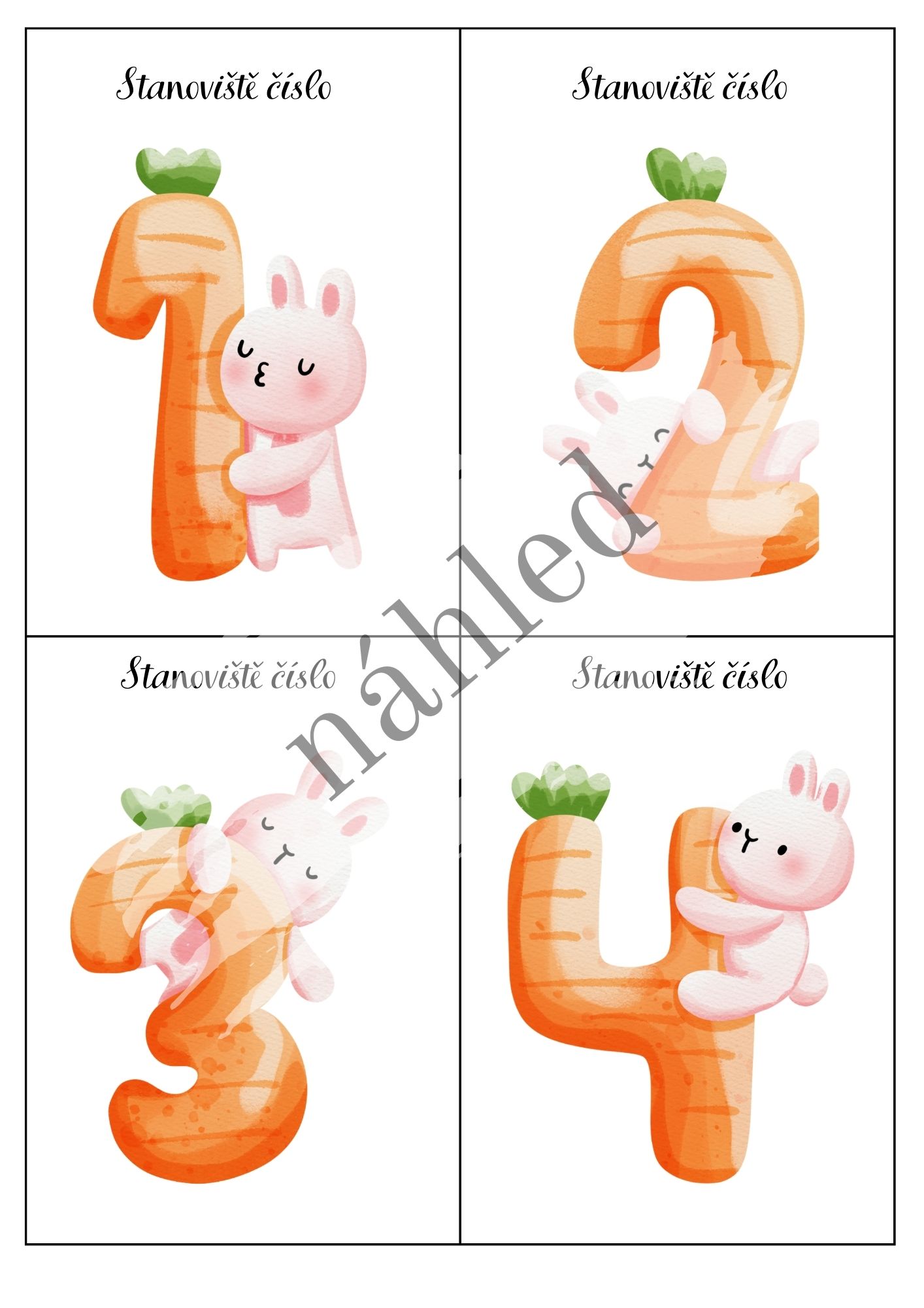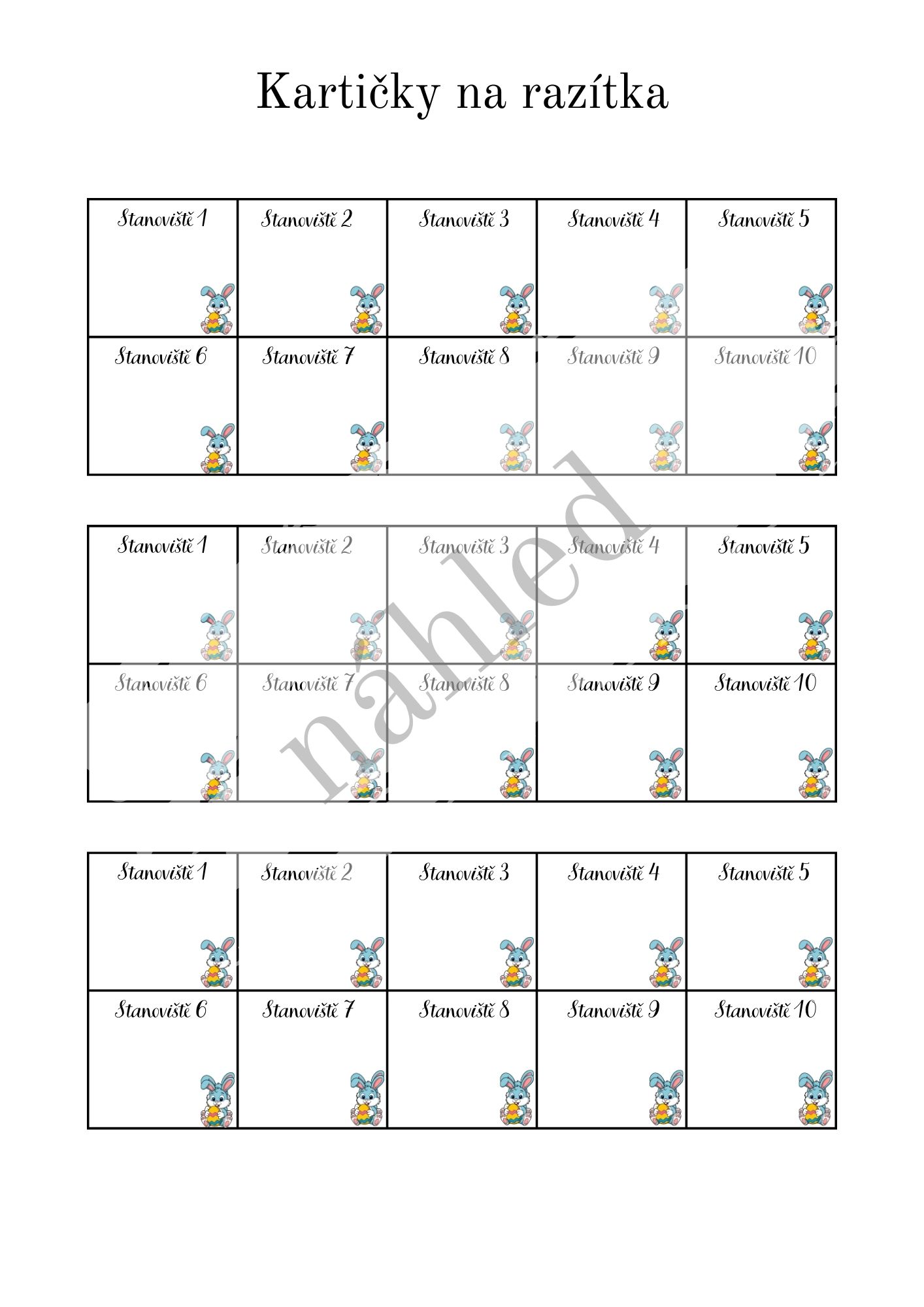 - 10 stanovišť s úkoly (pohybové, logické i vědomostní) s barevným i bílým pozadím