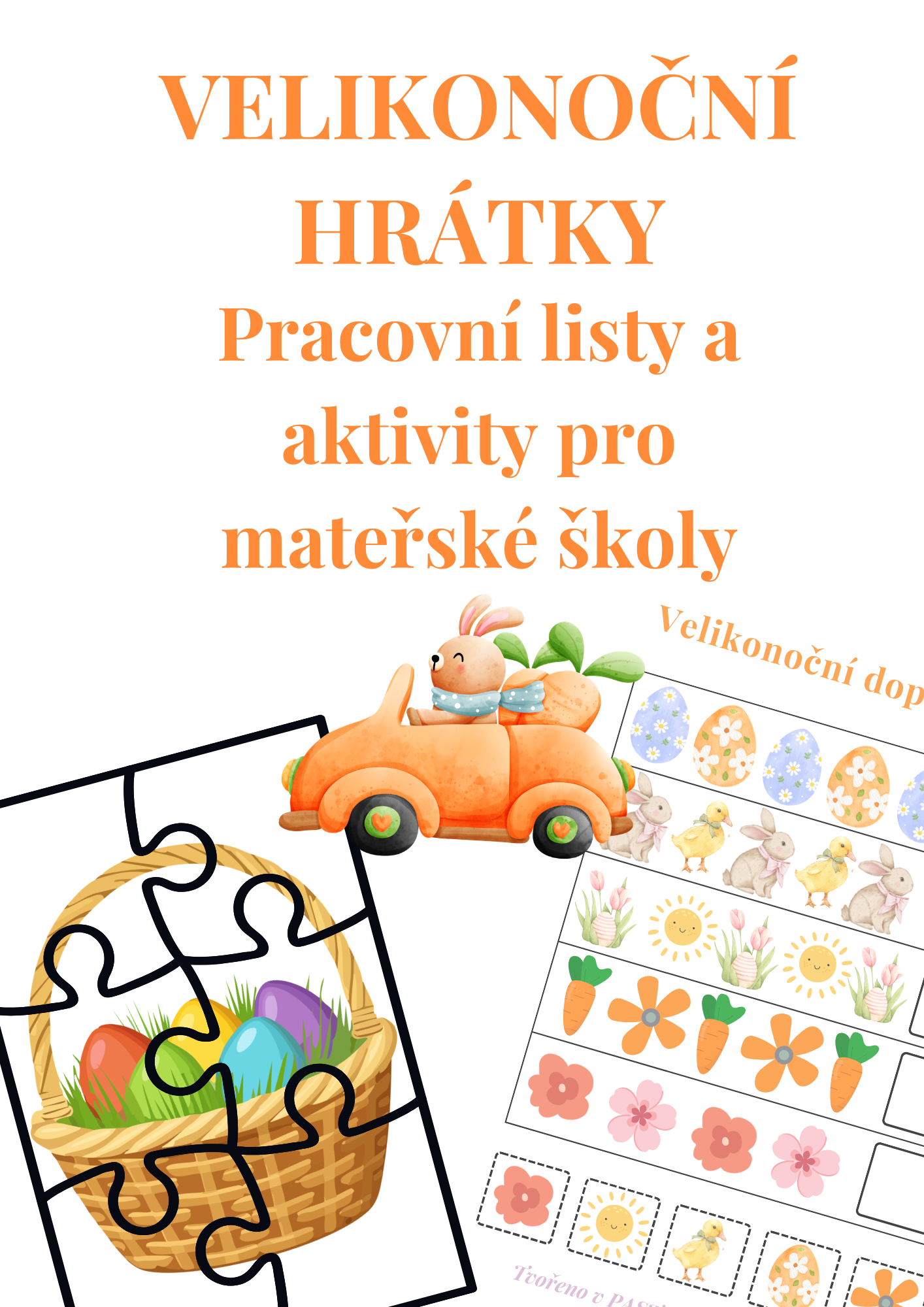 Soubor obsahuje hravé pracovní listy a aktivity s velikonoční a jarní tematikou určené především pro děti v mateřské škole a předškoláky. Materiál je zaměřen na rozvoj předmatematických představ, zrakového vnímání, logického myšlení, grafomotoriky a soustředění.