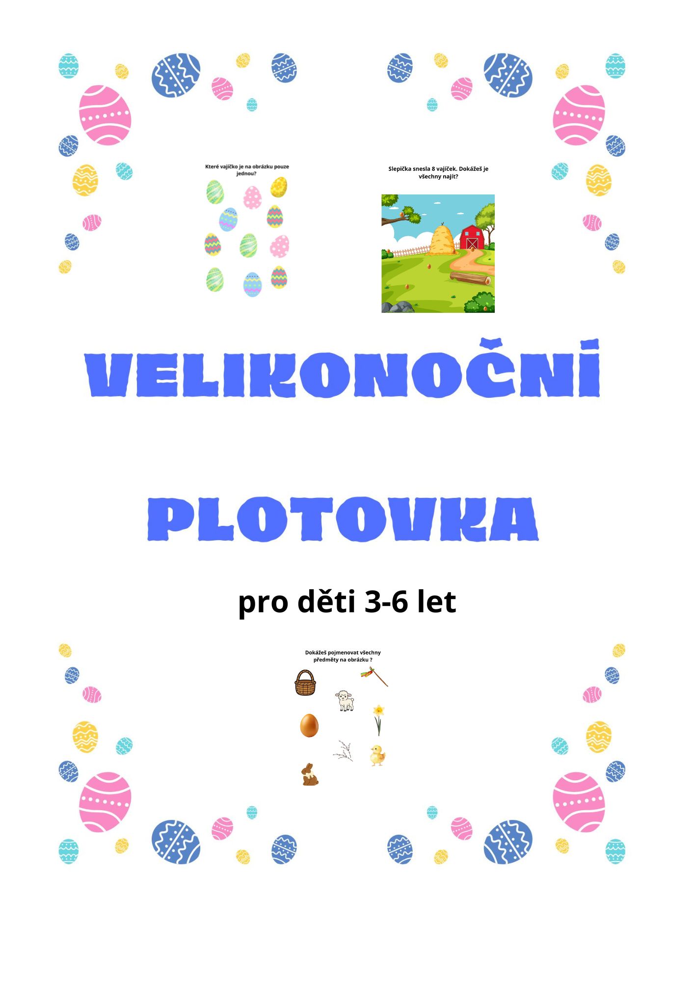 Soubor obsahuje 10 listů s jednoduchými úkoly a diplom za zvládnutí velikonoční plotovky.