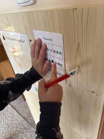 - učitelka pak zkontroluje vyplněné odpovědi a děti mohou případně něco dostat (například omalovánku nebo samolepku)