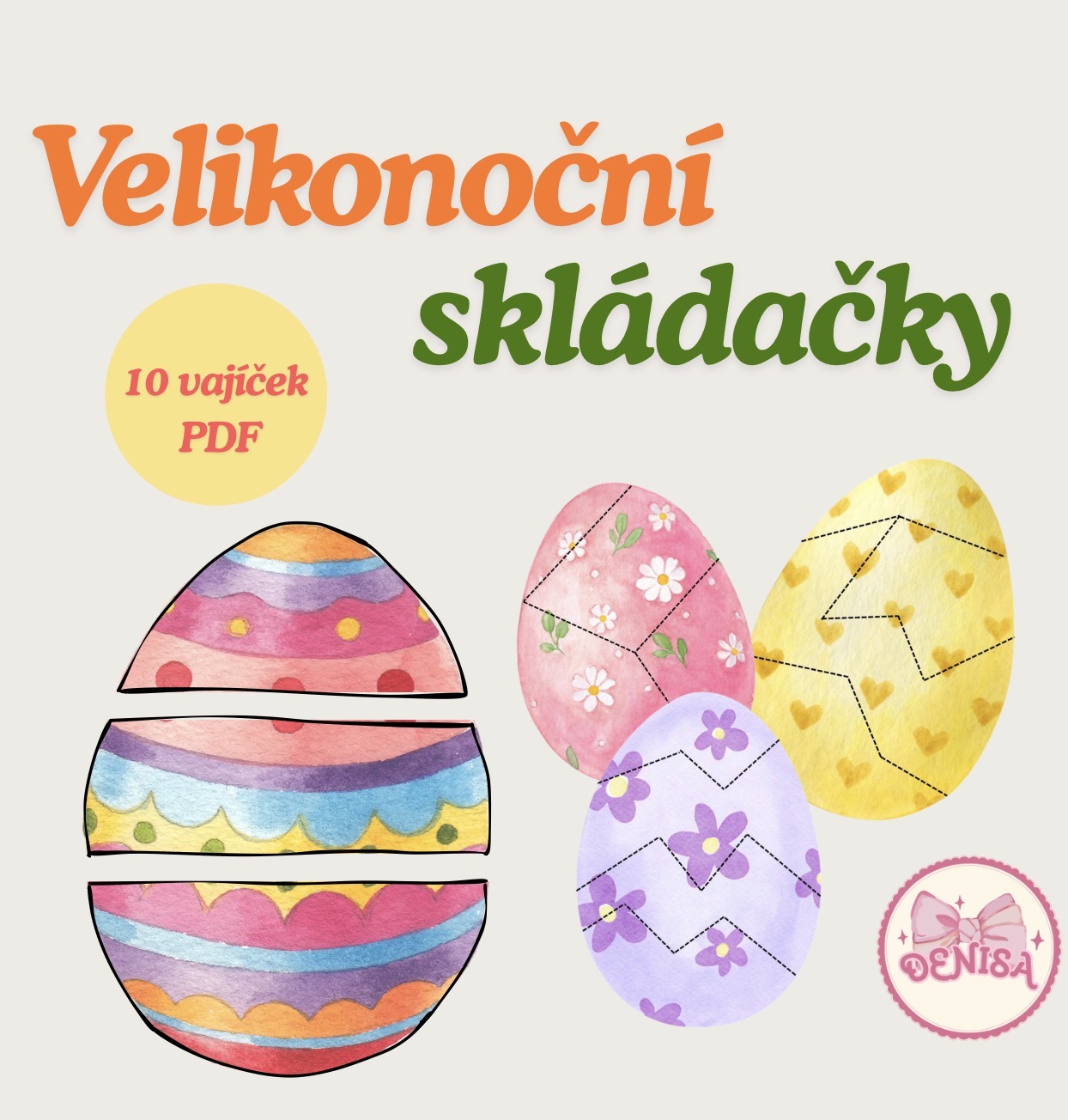 - Celkem 10 originálních designů vajíček v jemných akvarelových barvách.