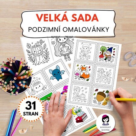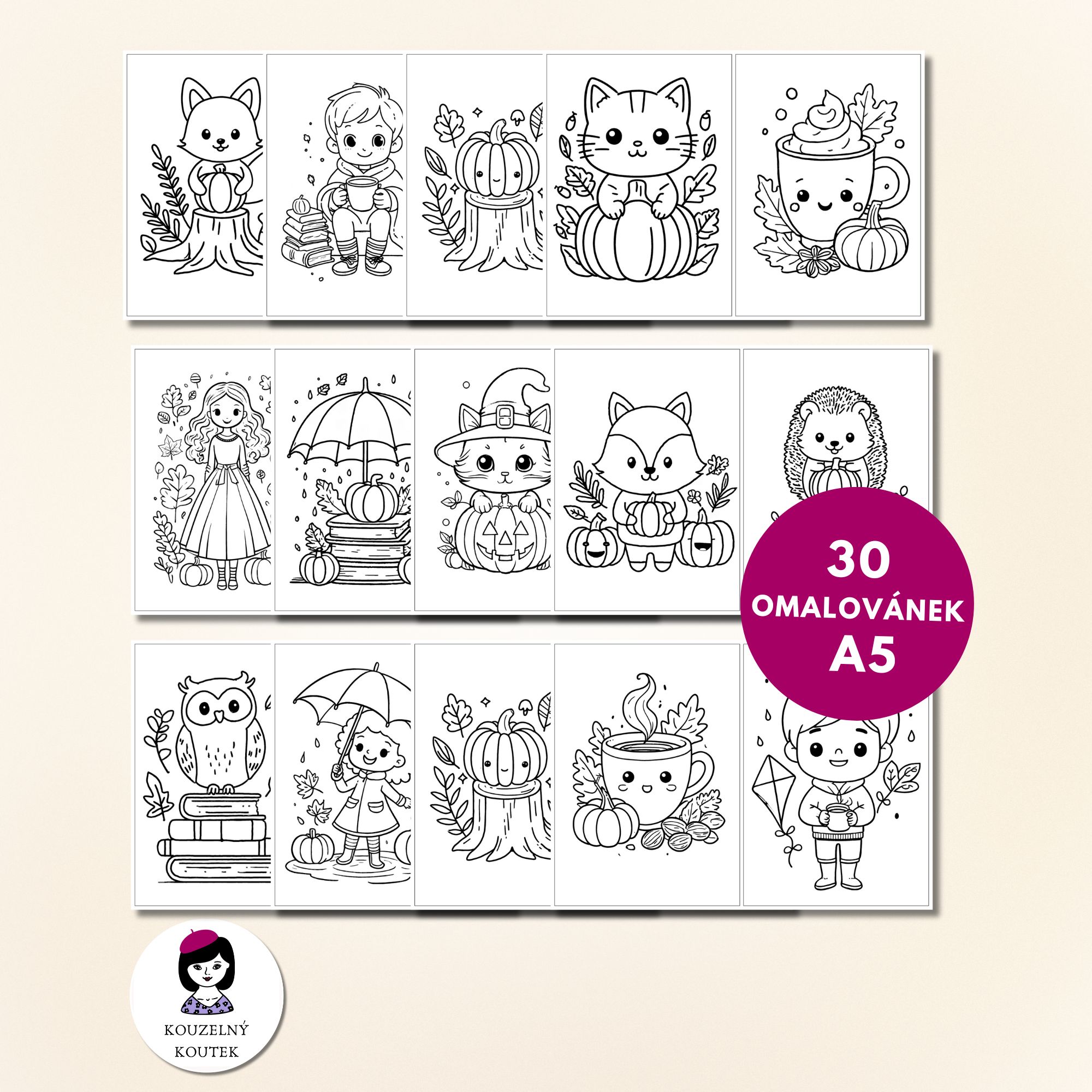 Podzimní omalovánky - 30 A5 omalovánek na téma podzim (15 A4 stran)