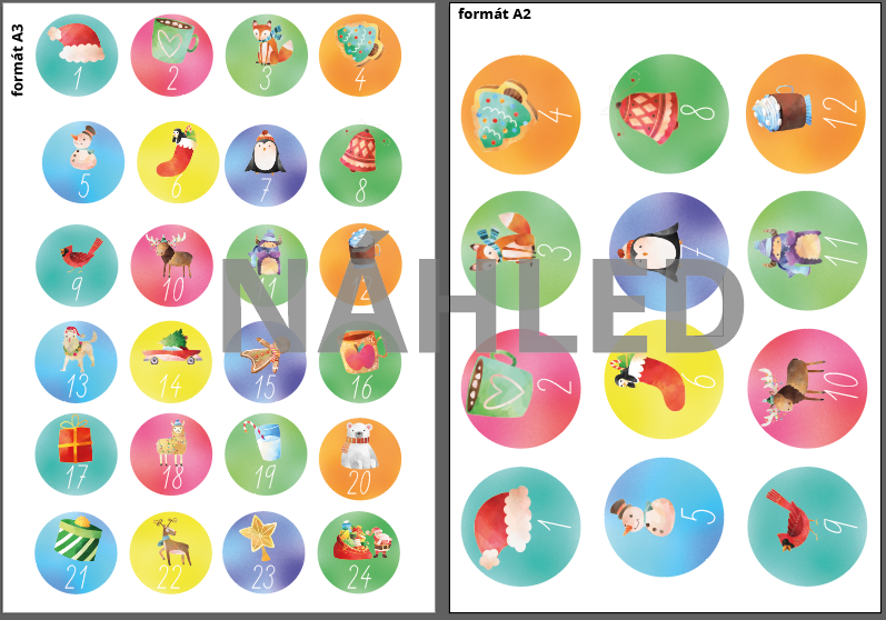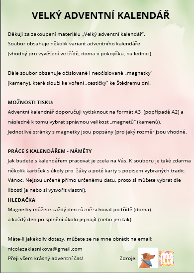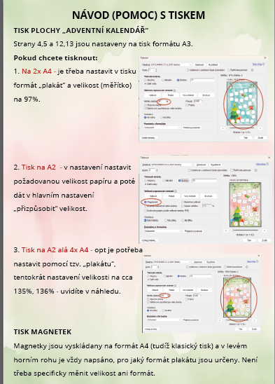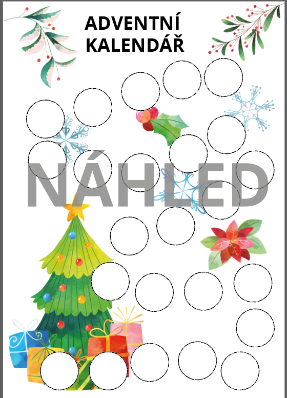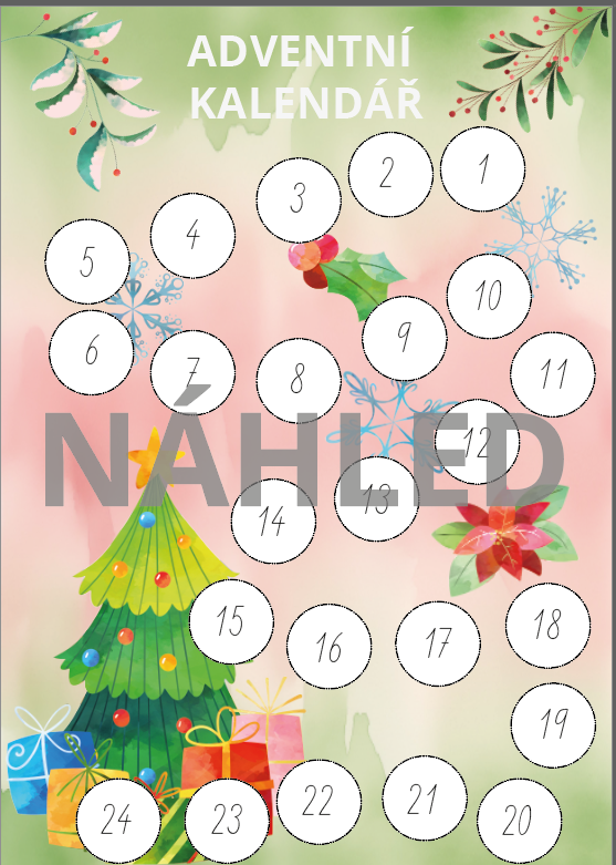 Adventní kalendář doporučuji vytisknout na formát A3 (popřípadě A2) a