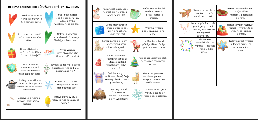 V souboru najdete také zdarma kartičky s úkoly pro žáky a kartičky s vybranými vánočními tradicemi. Využití těchto kartiček je zcela na Vás (nemají pevnou návaznost na magnetky či kalendář samotný).