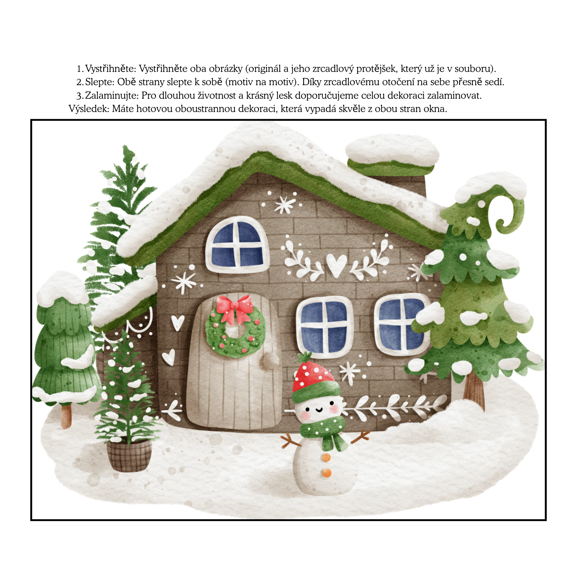 - Oboustranné dekorace (Zvířata, domečky a další motivy): Připravené šablony s obrázky zvířat, zasněžených domečků a dalších zimních motivů. Po vystřižení a slepení vytvoříte oboustranné ozdoby, které jsou ideální pro zavěšení do oken nebo prostoru třídy – vypadají skvěle z obou stran.