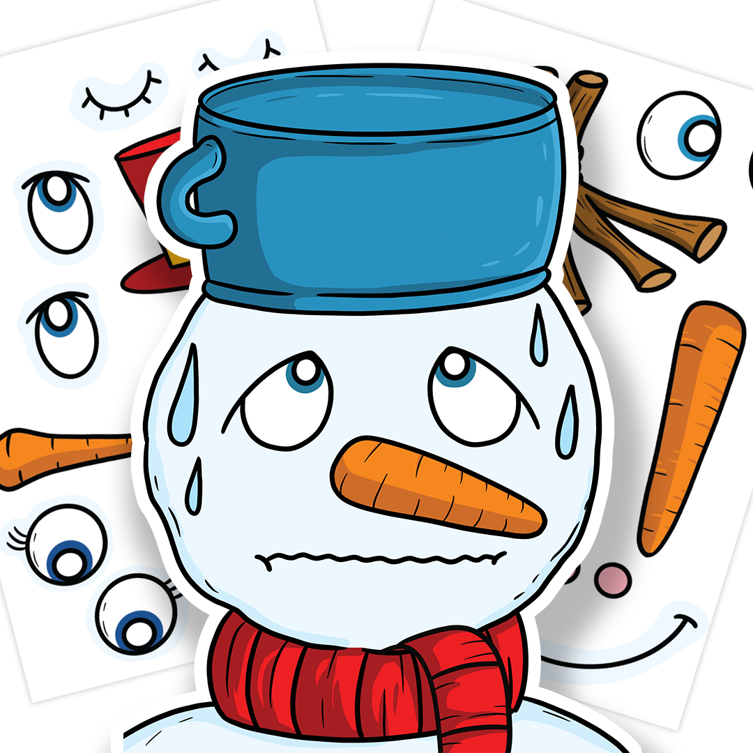 Stačí vystřihnout jednotlivé části obličeje a poskládat si vlastního sněhuláka.