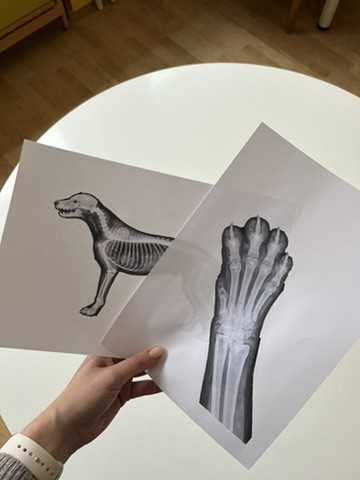 - rentgeny - jde pouze o ilustrativní obrázky, které dětem mohou přiblížit poznání o tom, jak vypadají zvířata a rentgenové snímky, v souboru jdou tři soubory - popisy, rentgeny s černým pozadím a rentgeny s bílým pozadím kvůli úspoře tisku (snímky se vytisknou a nalepí na černý papír)