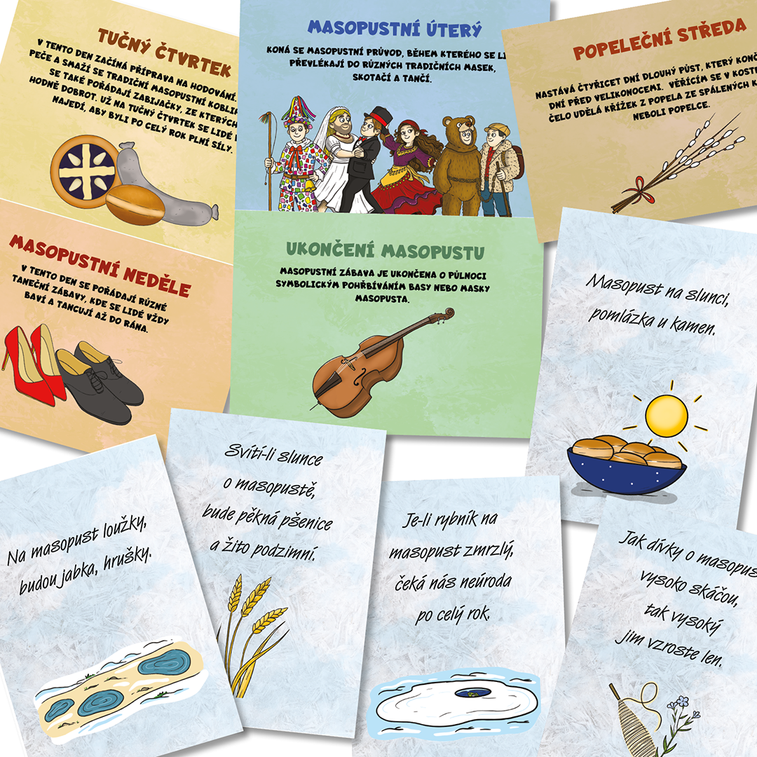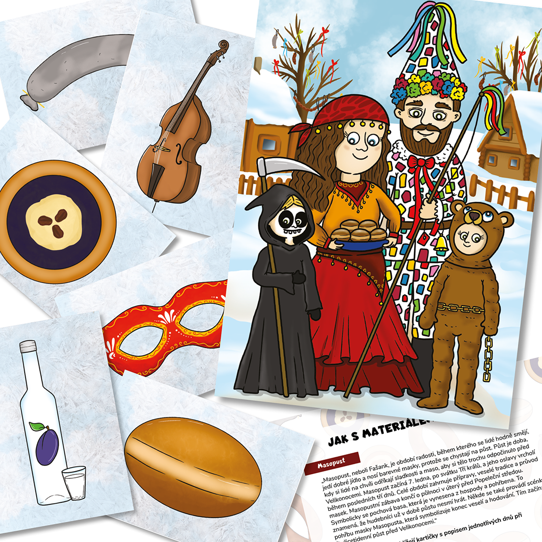 - nabídku dalších aktivit k tématu (obrázkový recept masopustních koblih, tvoření jitrnic, výroba škrabošky, pohybové hry)