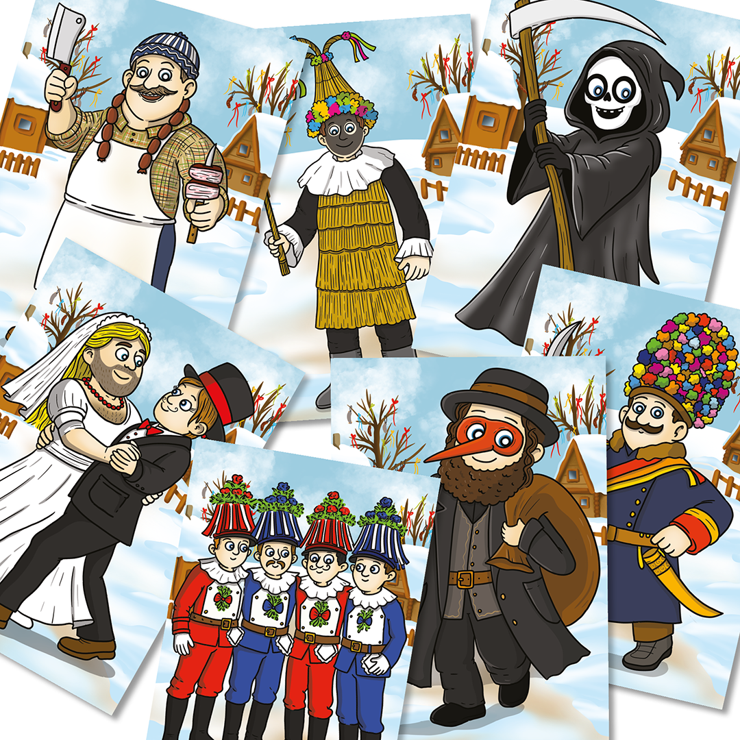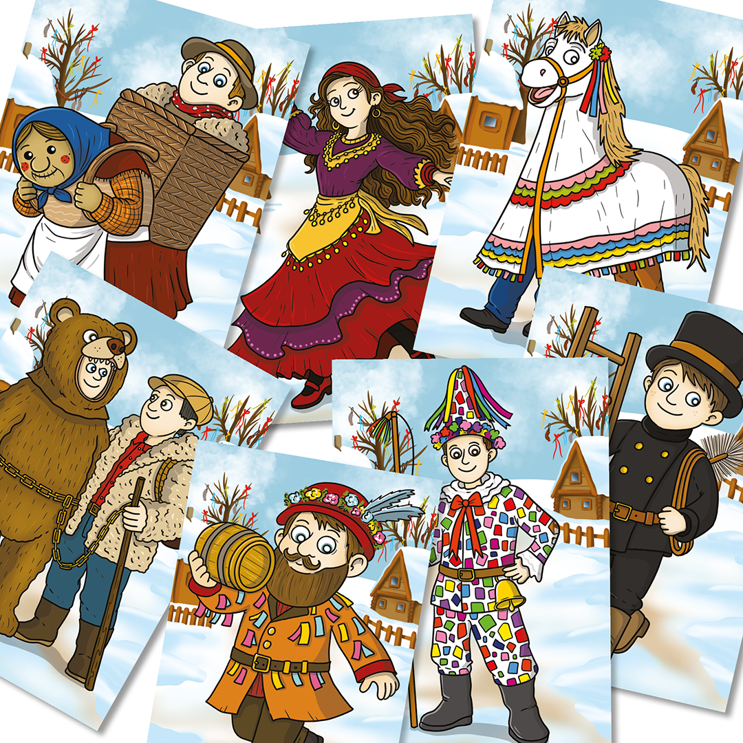 - demonstrační obrázky symbolů masopustu