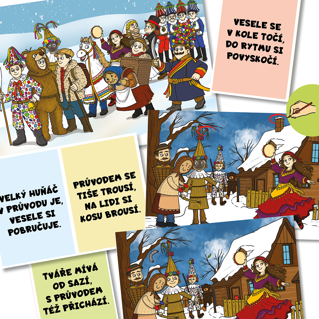 „Ahoj děti, mé jméno je Marta Všeználková a budu si s vámi povídat o masopustu. O tomto období už jste možná někdy slyšeli, někteří z vás možná už i viděli masopustní průvod, ochutnali koblihy, nebo si vyrobili masku. Ale víte, proč se masopust slaví? Jaké tradice jsou s ním spojené a co je to třeba Tučný čtvrtek, masopustní úterý nebo Popeleční středa? Masopust není jen obdobím hodování a veselí, ale především nám připomíná období přípravy na půst. My si povíme, které postavy se objevují v masopustním průvodu a co symbolizují. Připravila jsem pro vás spoustu aktivit a zajímavostí, abyste si masopust mohli užít a třeba se i něco nového přiučit. Tak jdeme na to!“
