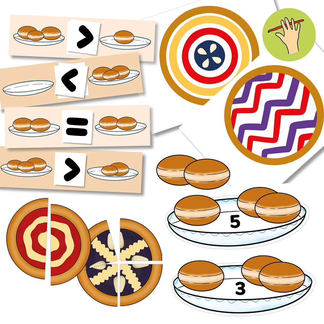 - aktivity ke stolečku (spojování koláčů, počítání koblih, modelování koláčů, hledání rozdílů, určování kde kdo stojí v průvodu)