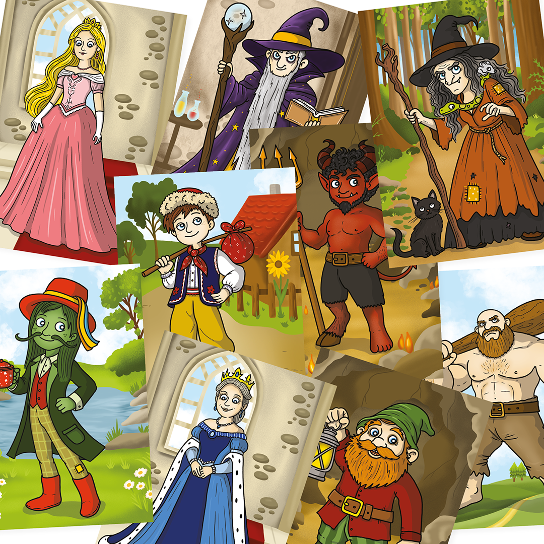- demonstrační obrázky pohádkových postav ve formátu A4 (19 postav)