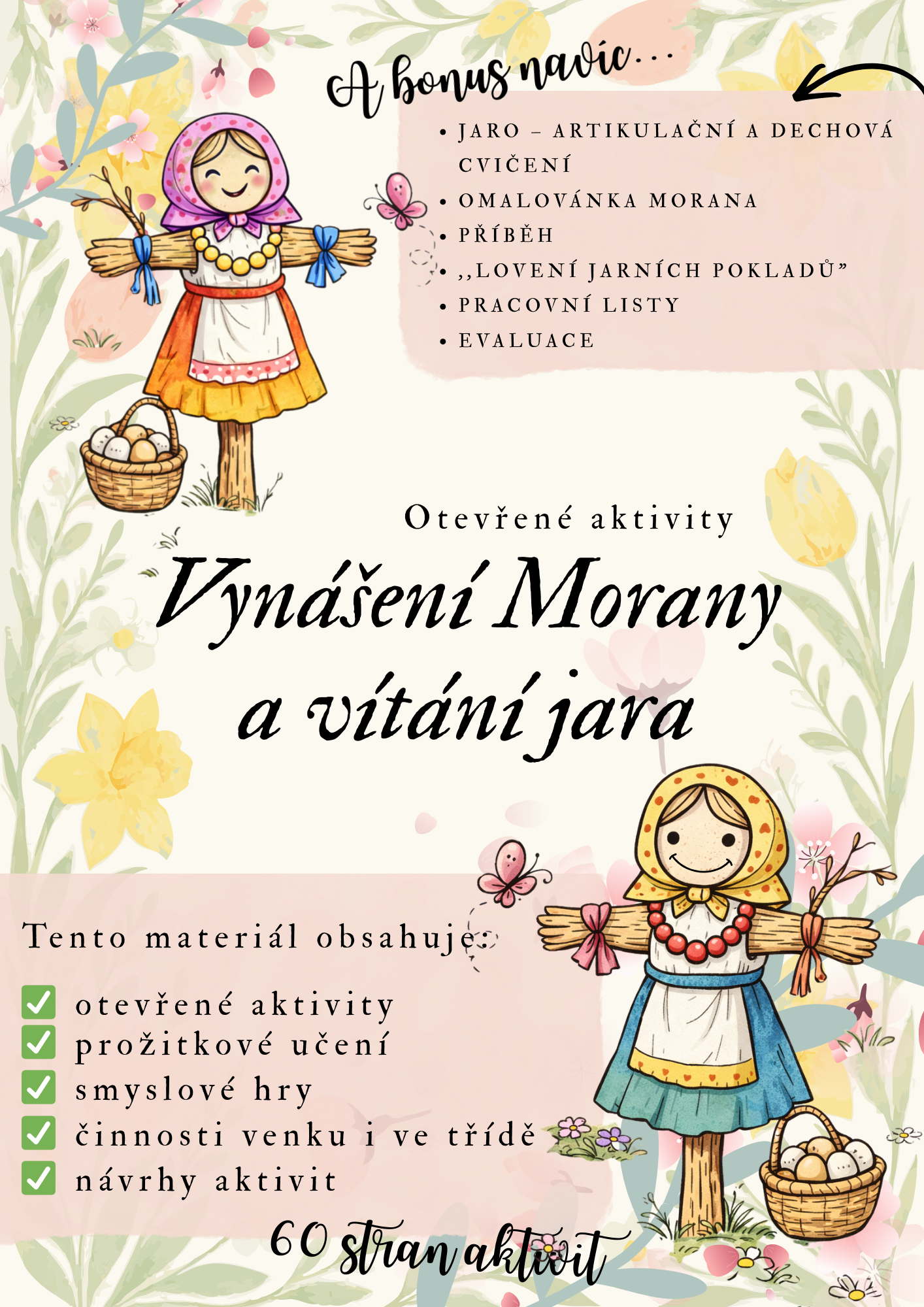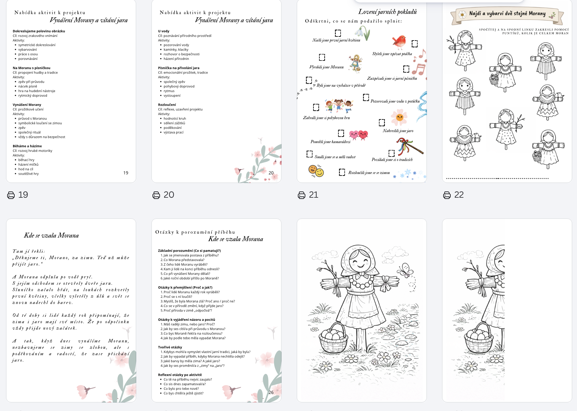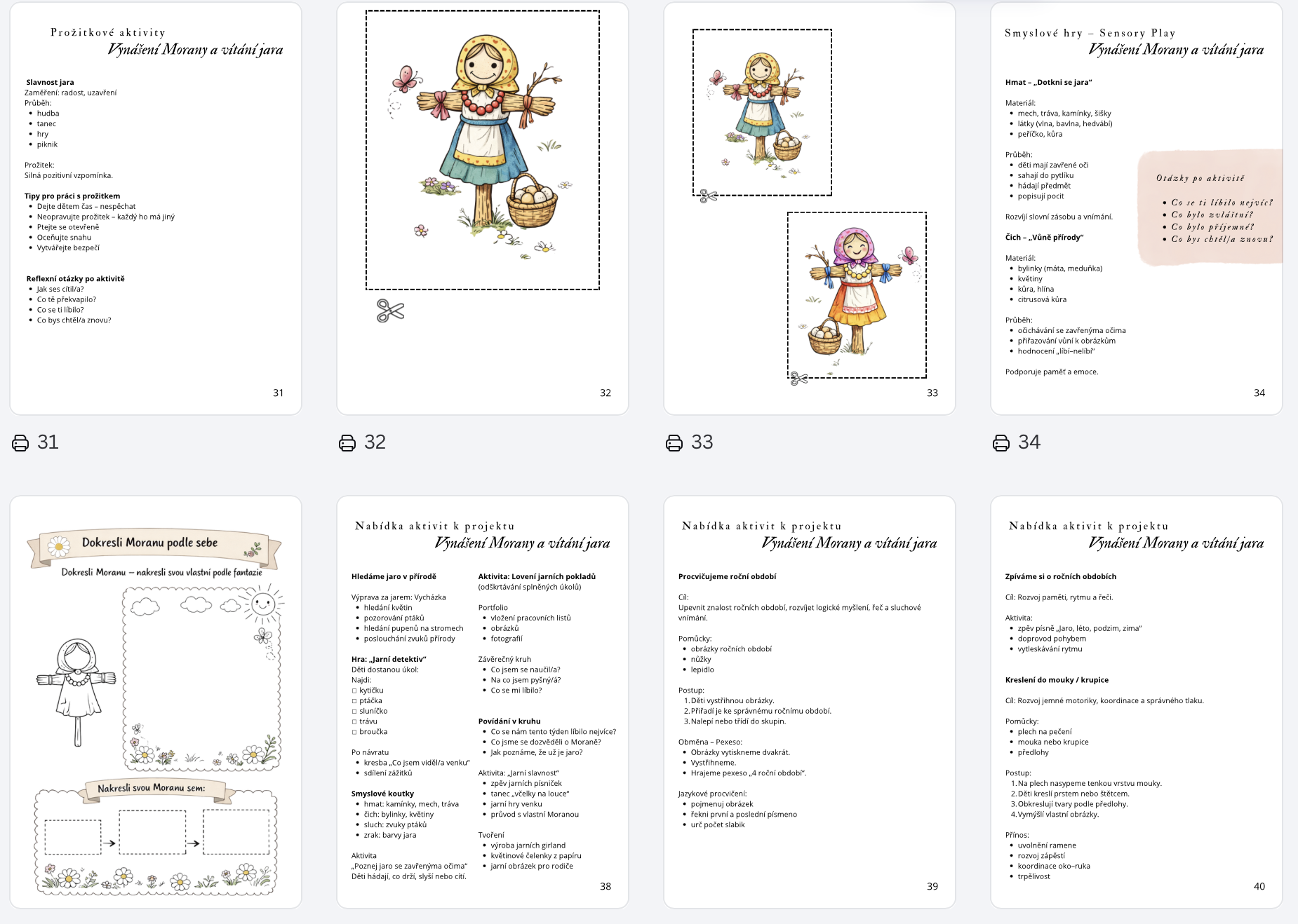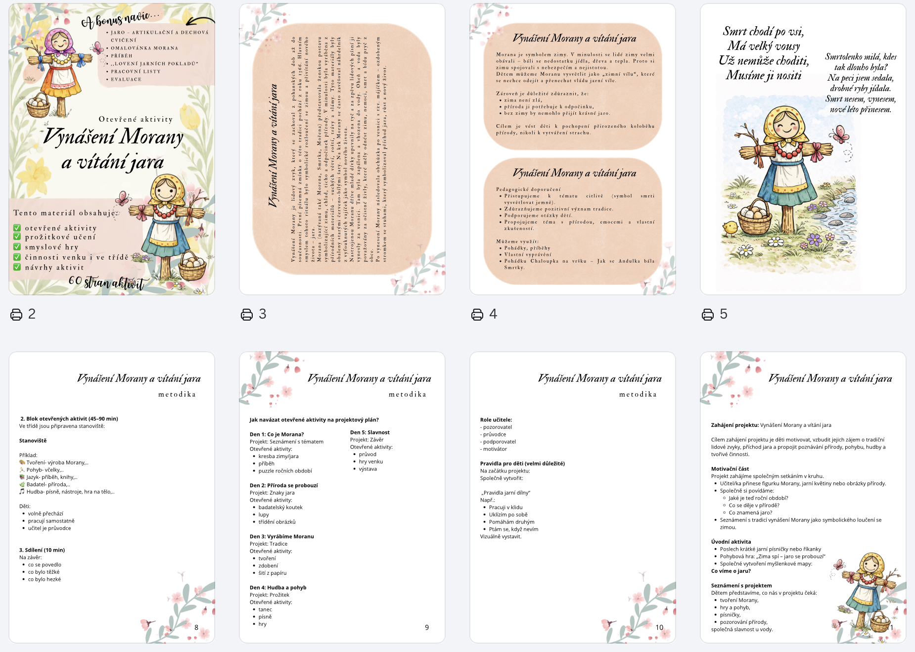 Kompletní vzdělávací projekt zaměřený na tradiční zvyk loučení se zimou a příchod jara. Obsahuje otevřené aktivity, pracovní listy, smyslové hry, tvoření i metodiku pro učitele.